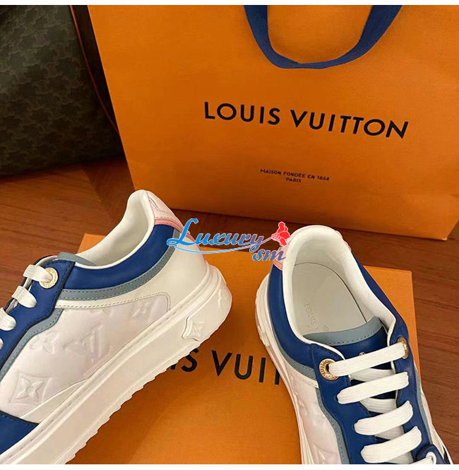 LOUIS VUITTON-1A8NG9 루이비통 화이트/블루 송아지 가죽 타임 아웃 스니커즈 가격 : 250,000원