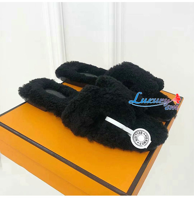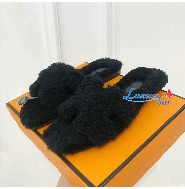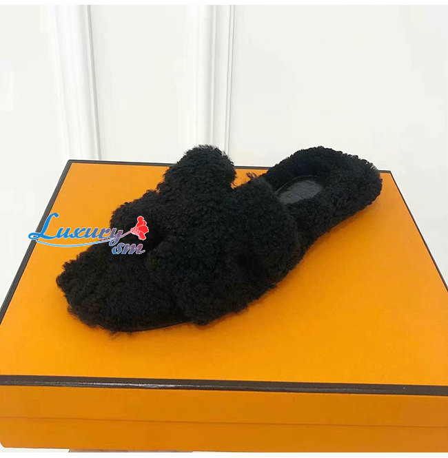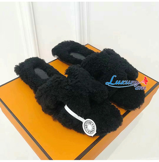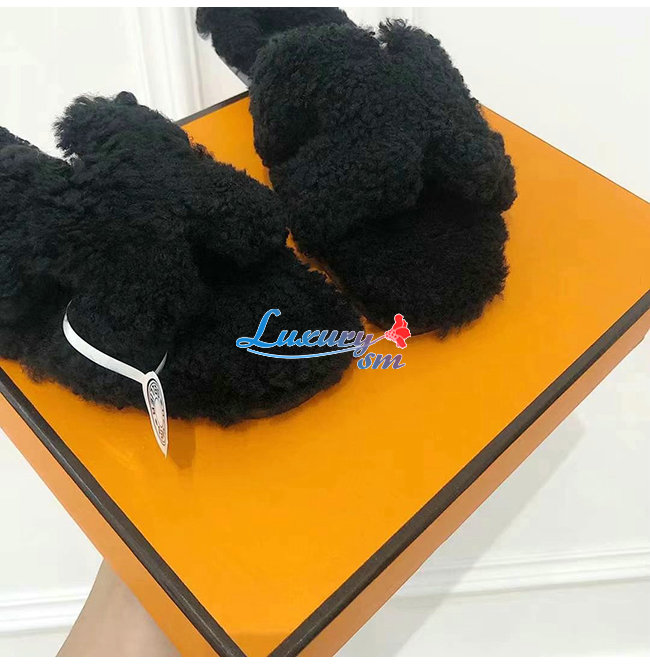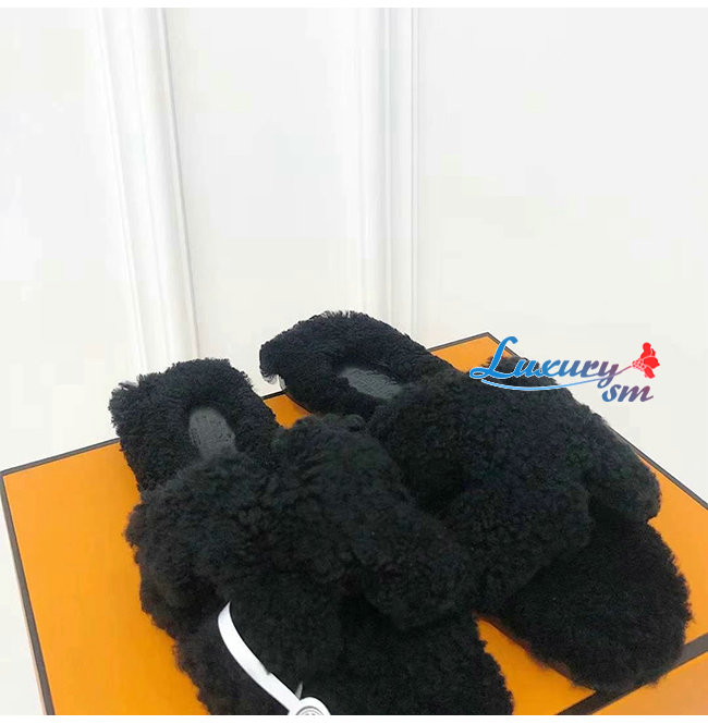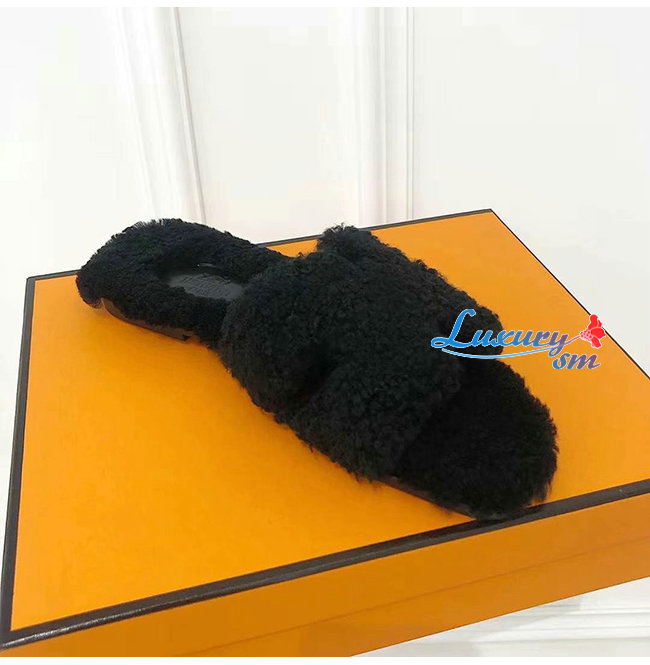 HERMES-H212178 에르메스 블랙 울스킨 Oran 샌들