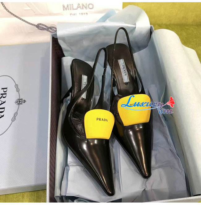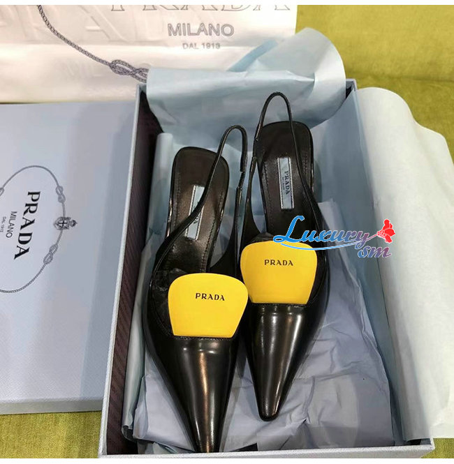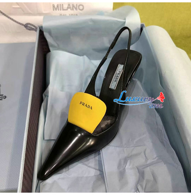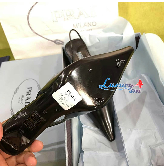 PRADA-1I561M 프라다 블랙 블러시드 가죽 슬링백 펌프스 가격 : 240,000원