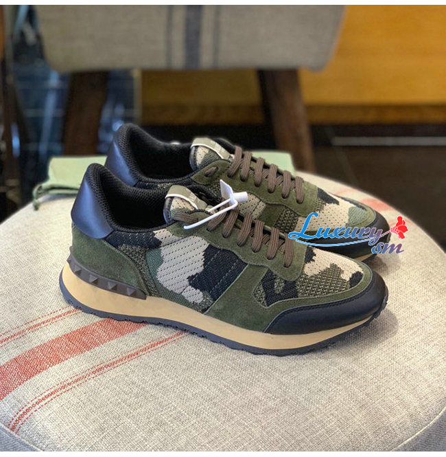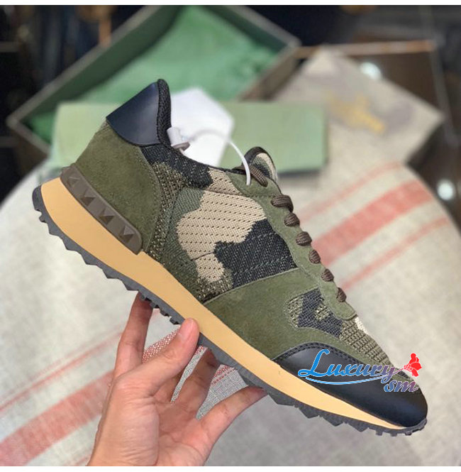 VALENTINO-WY2S0723 발렌티노 카키 메쉬 패브릭 카무플라주 락러너 스니커즈 남성용