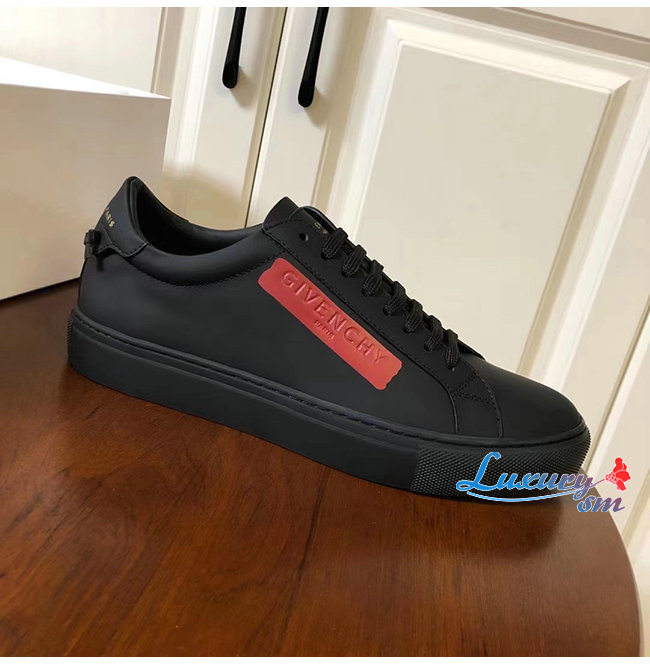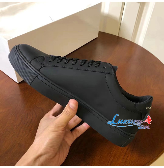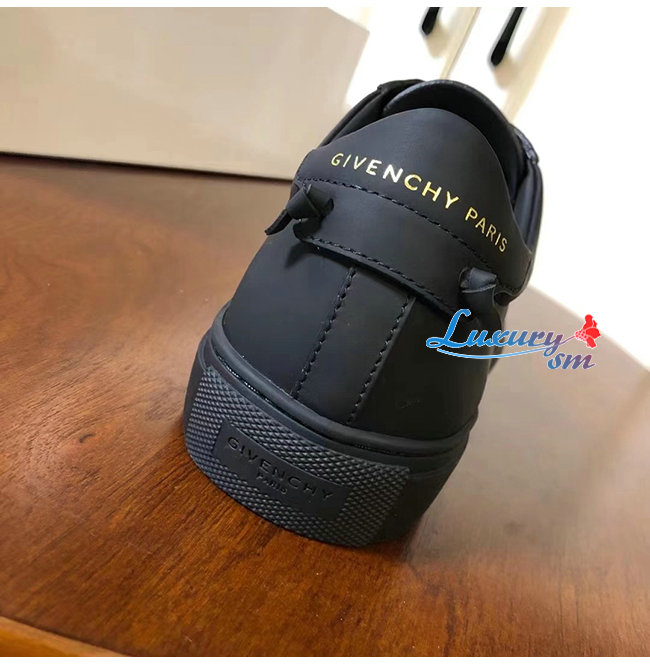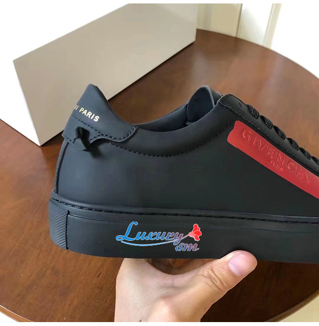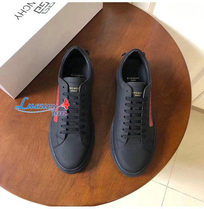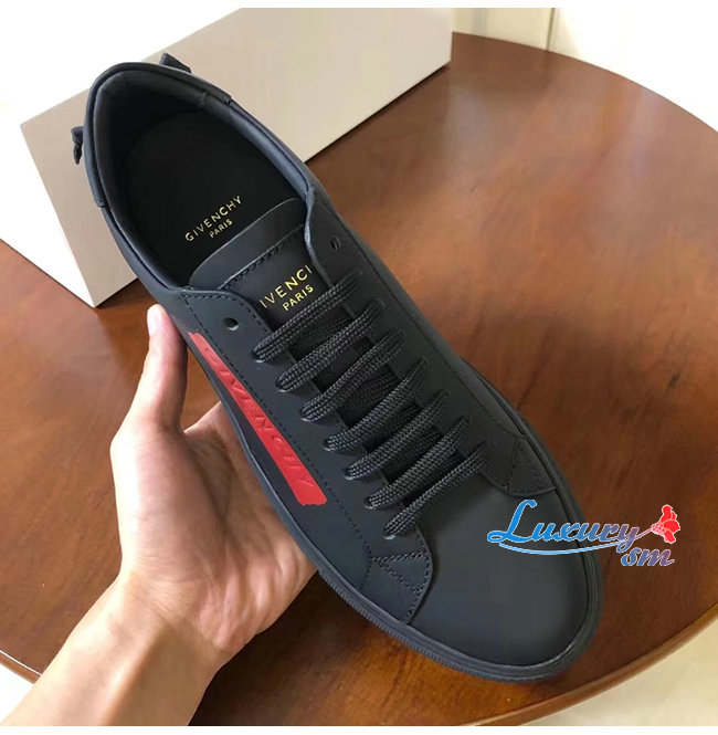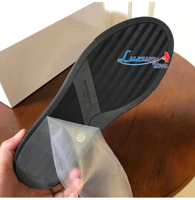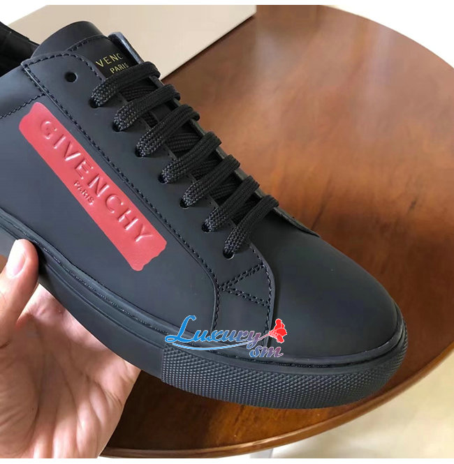 GIVENCHY-BH0002 지방시 블랙 송아지 가죽 라텍스 밴드 장식 스니커즈 남성용