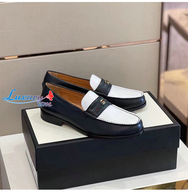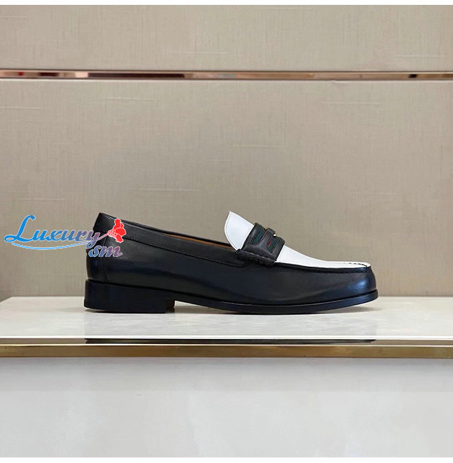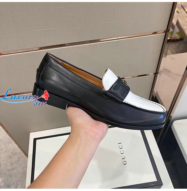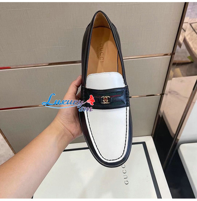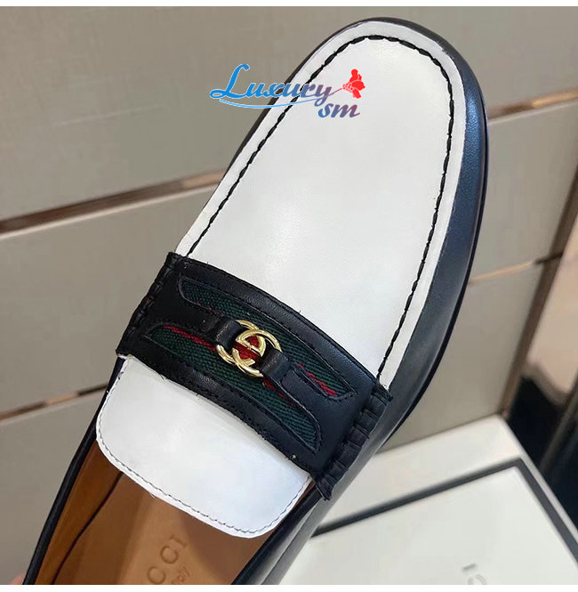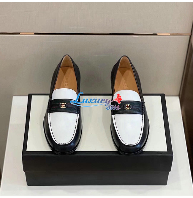 [스페셜오더]GUCCI-644724 1079 구찌 블랙/화이트 가죽 더블 G 장식 로퍼