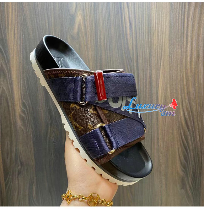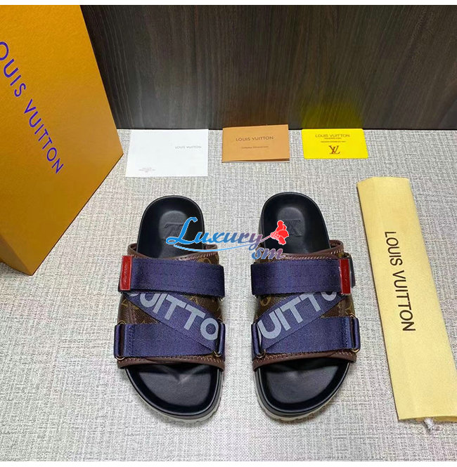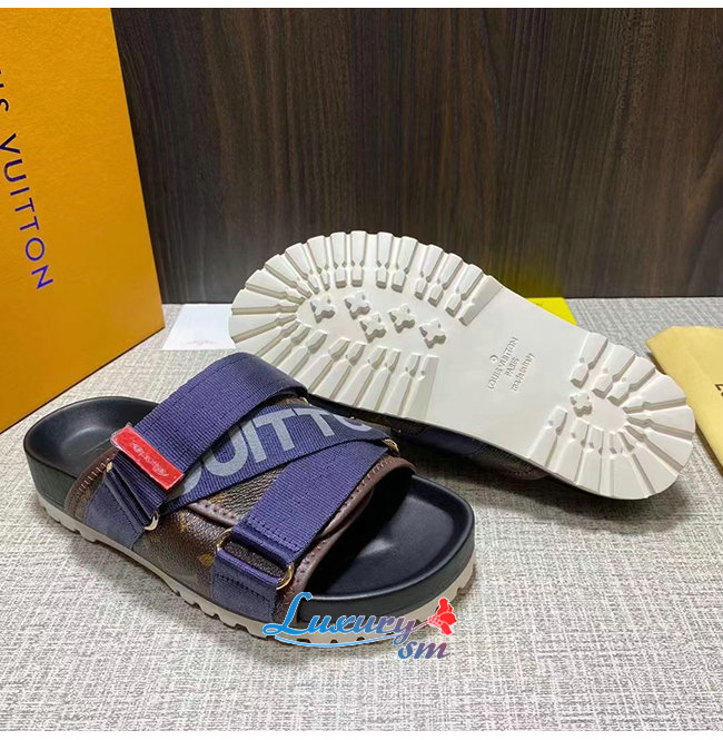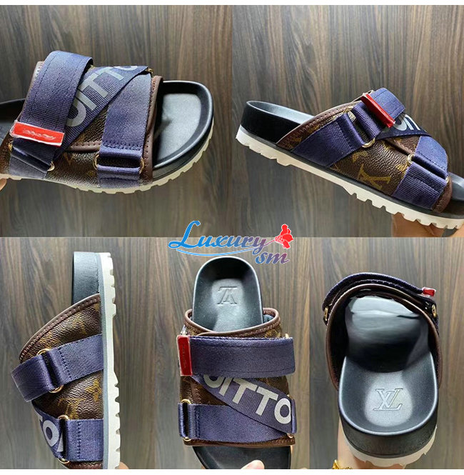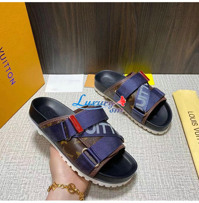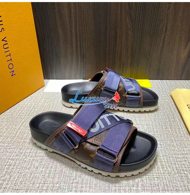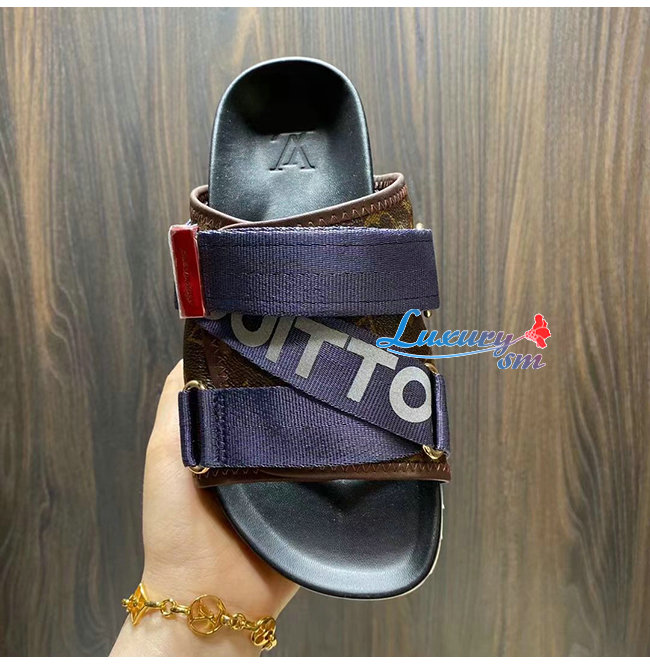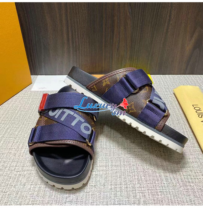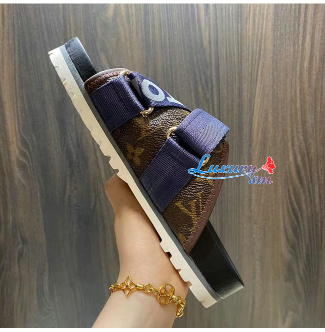 루이비통 로고가있는 모노그램 캔버스 샌들.