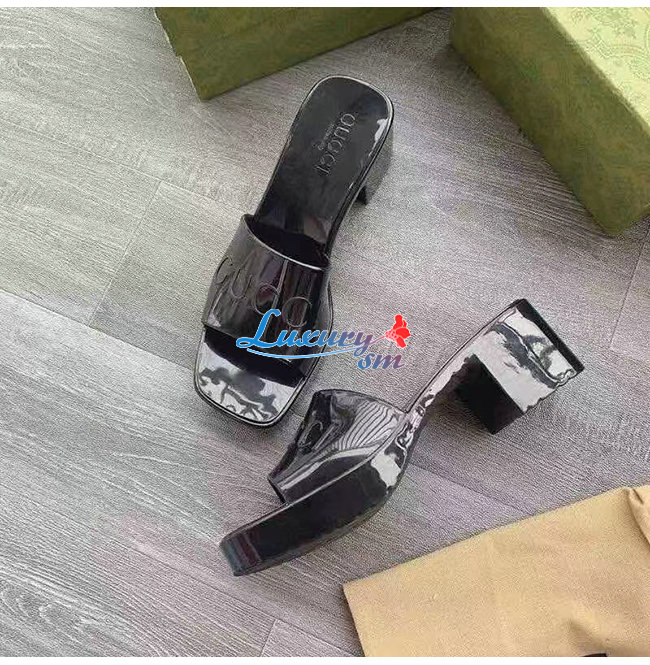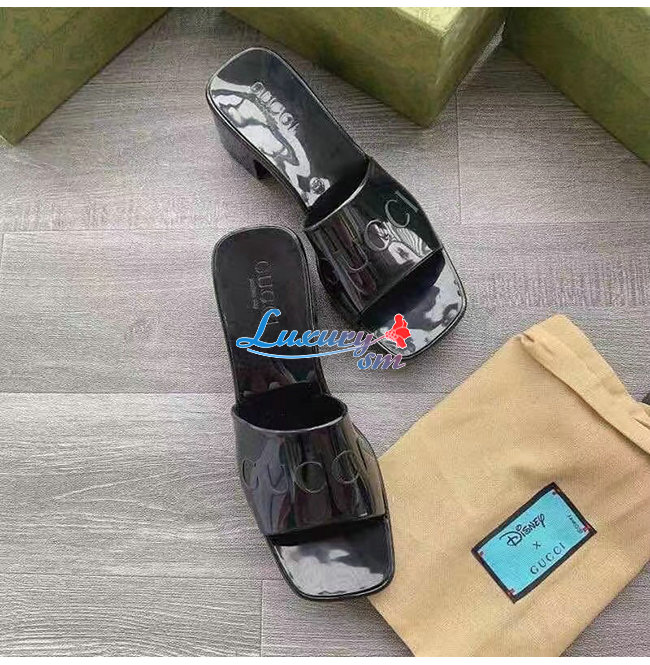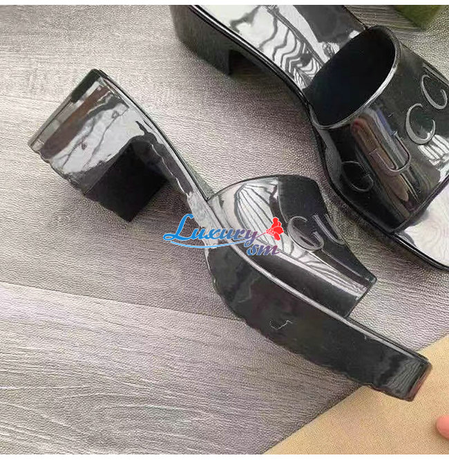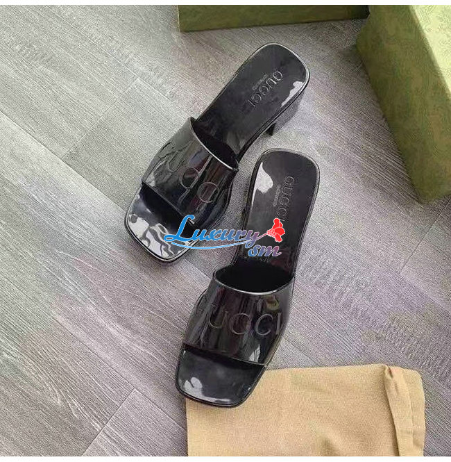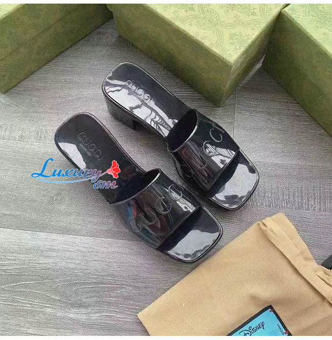 GUCCI-624730 1000 구찌 블랙 러버 슬라이드 샌들
