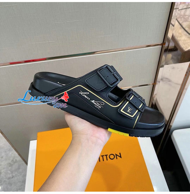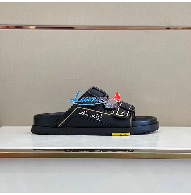 LOUIS VUITTON-1A90D3 루이비통 블랙 송아지 가죽 LVXNBA LV 트레이너 뮬