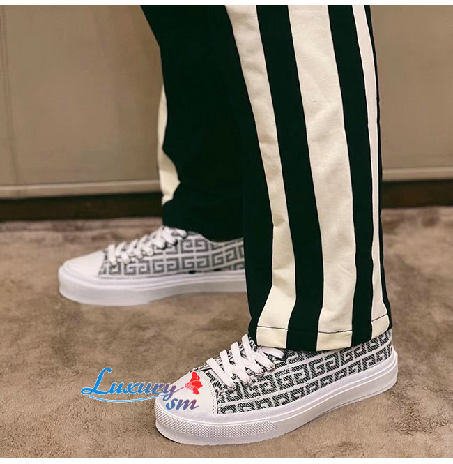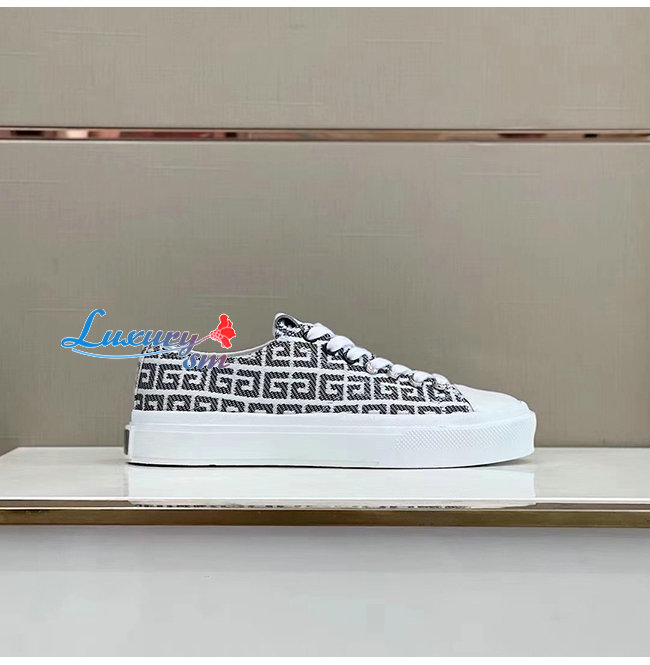 GIVENCHY-BH0050H 지방시 블랙/화이트 4G 모티프 자카드 시티 스니커즈 남성용