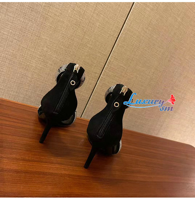 이 모델은 가느 다란 스틸레토 힐이 특징이며 뒷면의