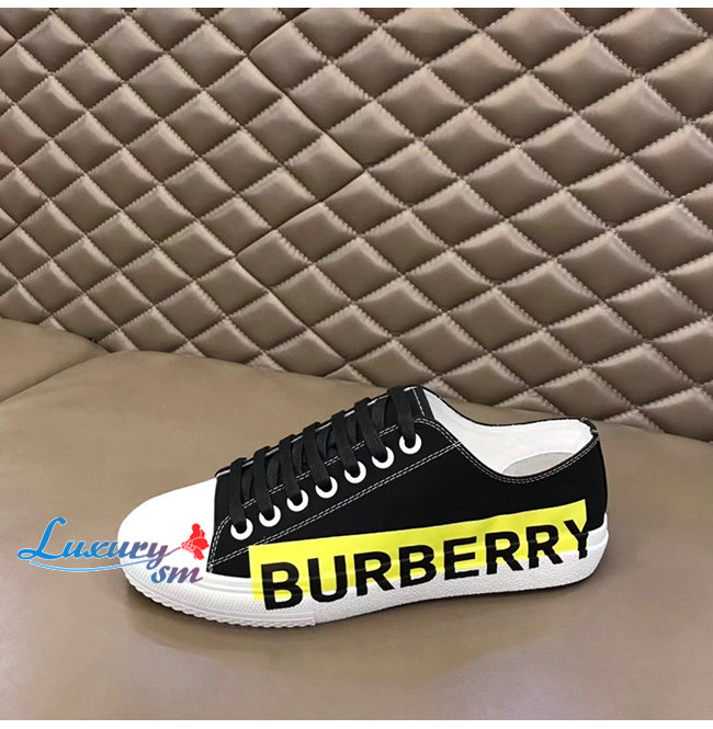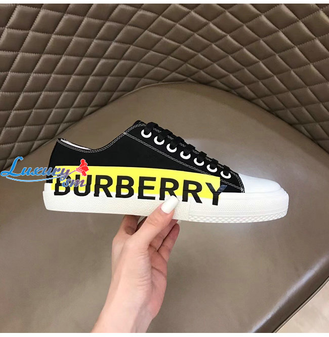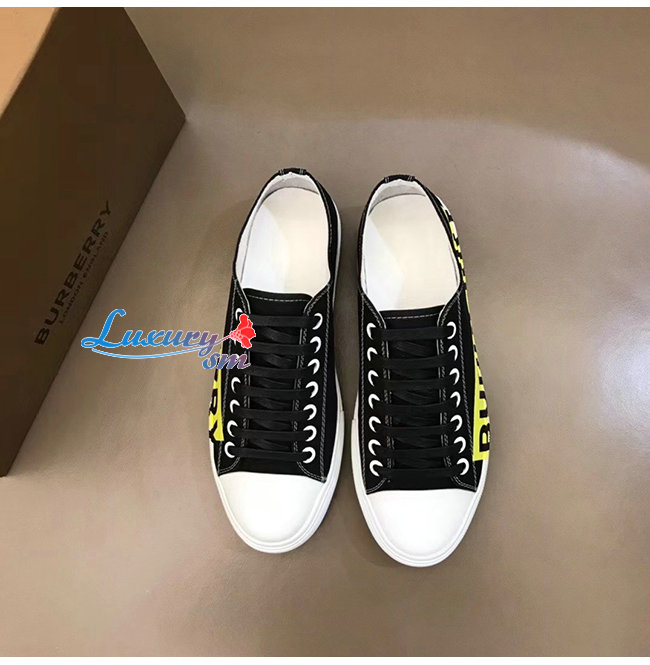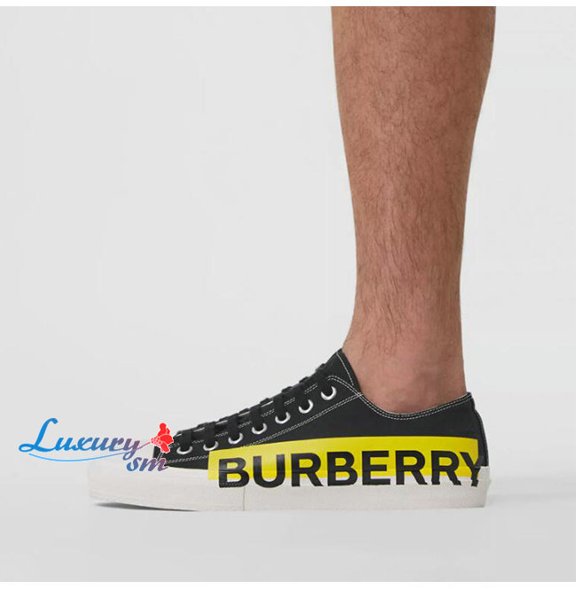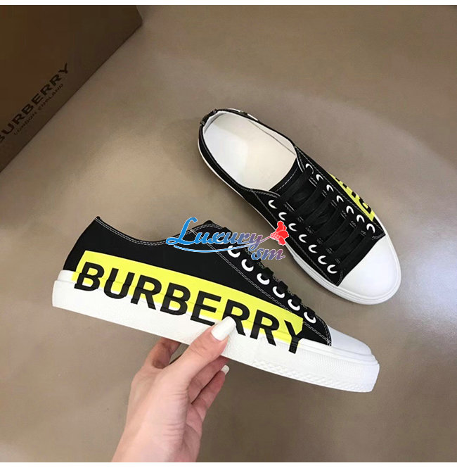 BURBERRY-80383471 버버리 블랙/옐로우 로고 프린트 투톤 코튼 개버딘 스니커즈