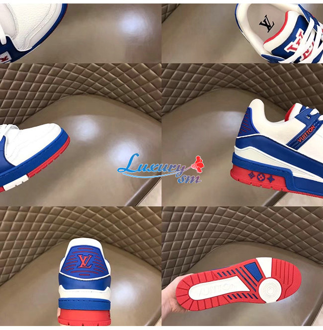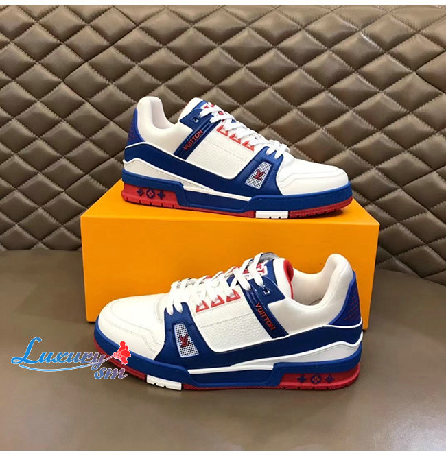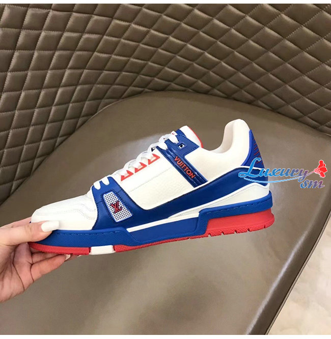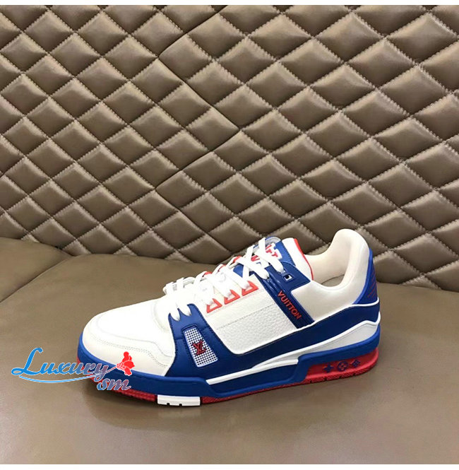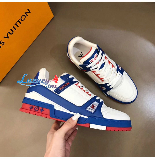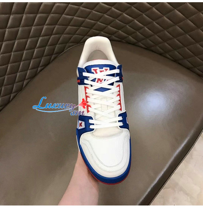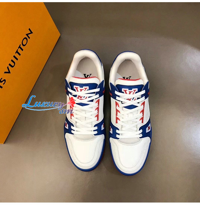 LOUIS VUITTON-1A8ZT4 루이비통 화이트/블루 송아지 가죽 LV 트레이너 스니커즈