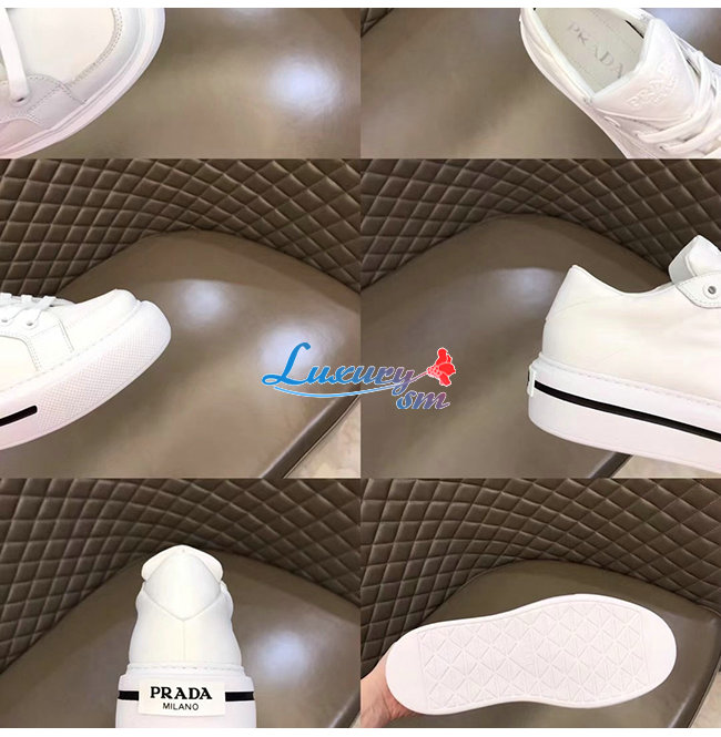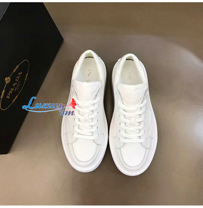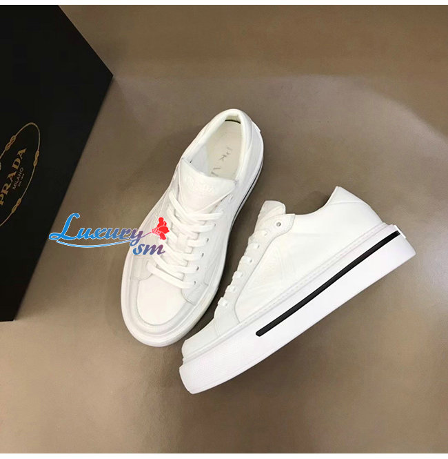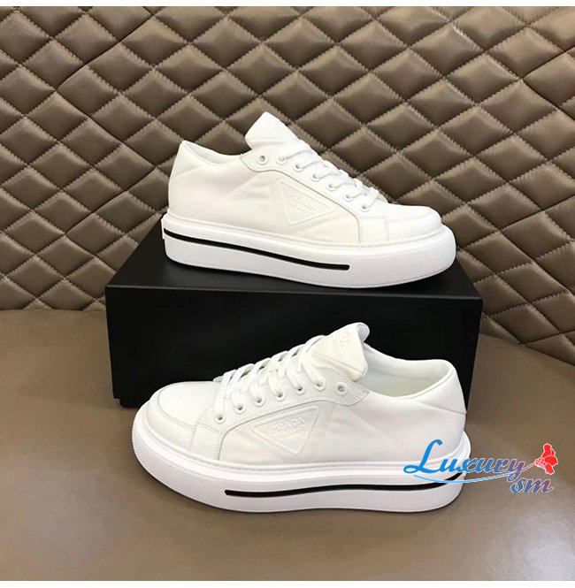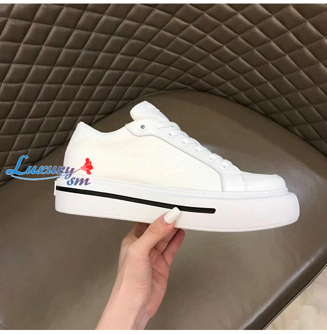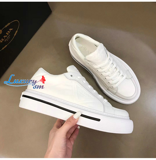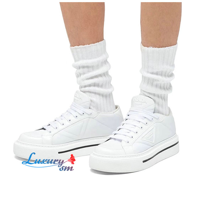 PRADA-1E661M 프라다 블화이트 매크로 리나일론 브러시드 가죽 스니커즈
