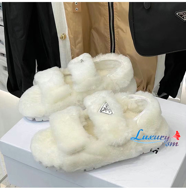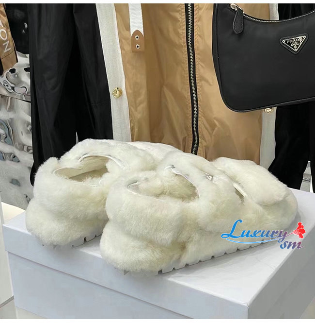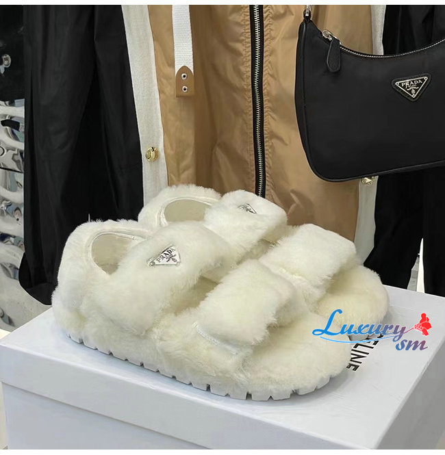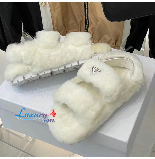 PRADA-1X737M 프라다 화이트 시어링 샌들