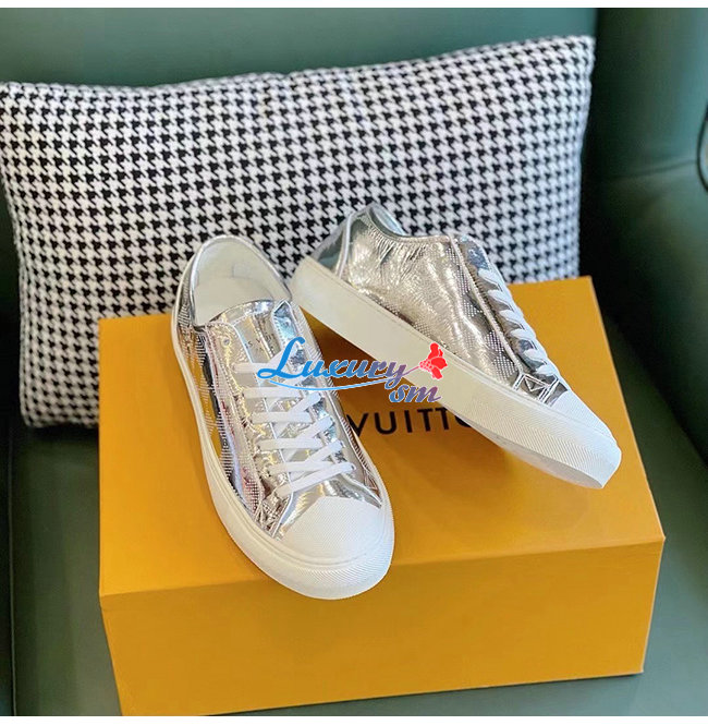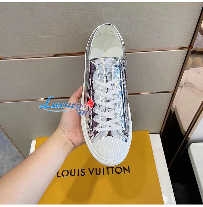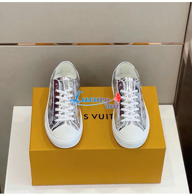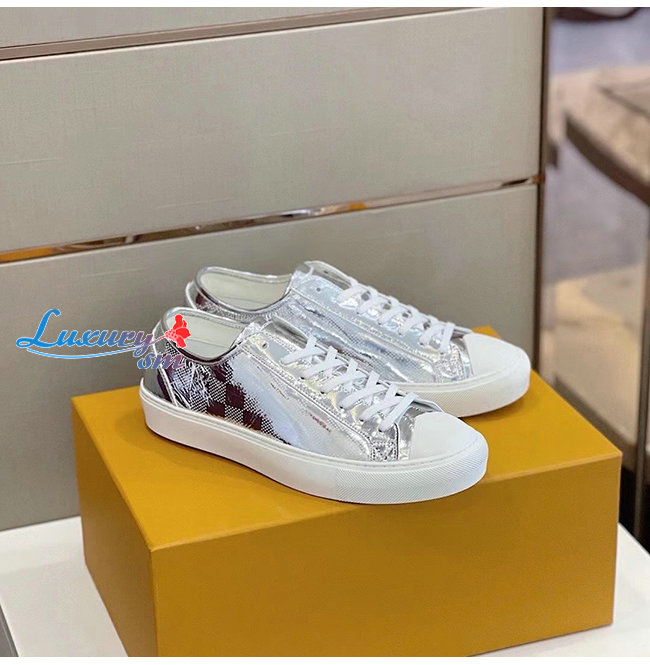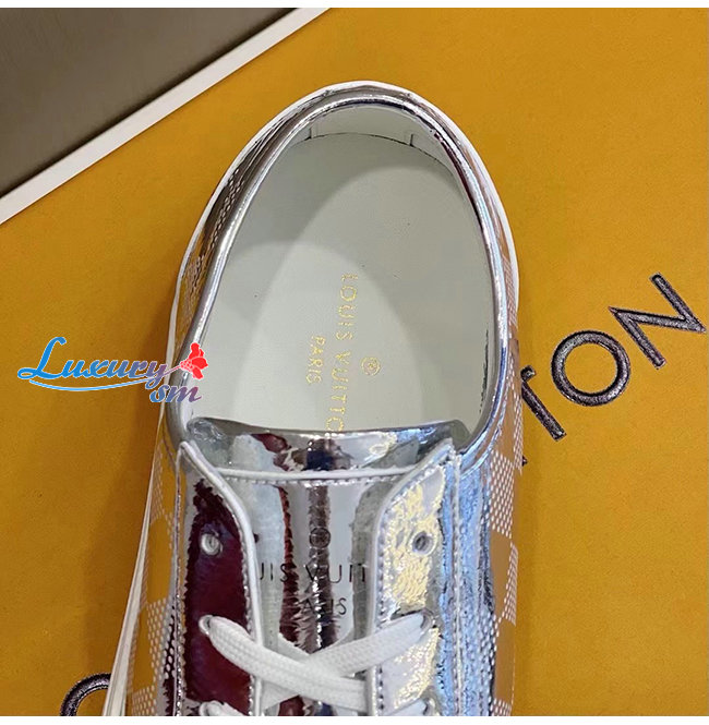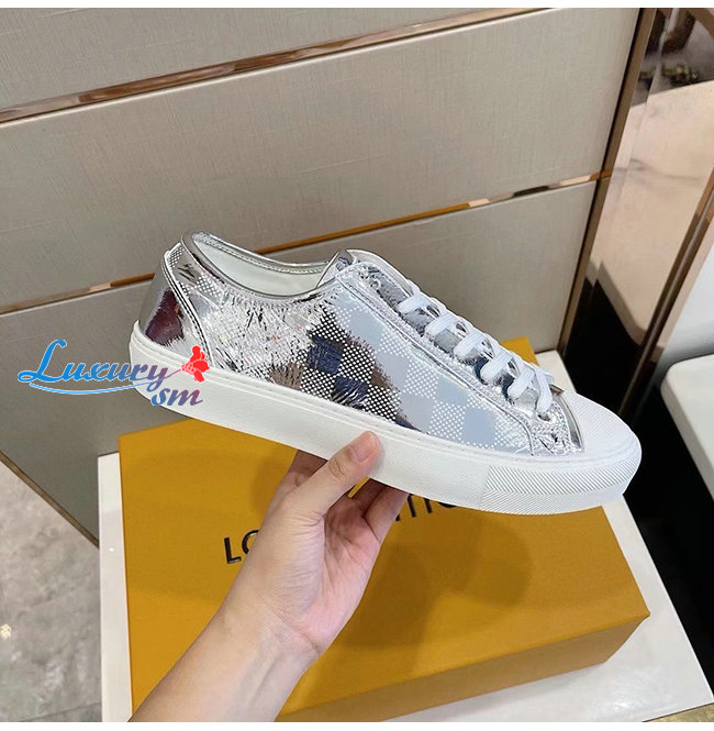 LOUIS VUITTON-1A90FX 루이비통 실버 메탈릭 다미에 타투 스니커즈