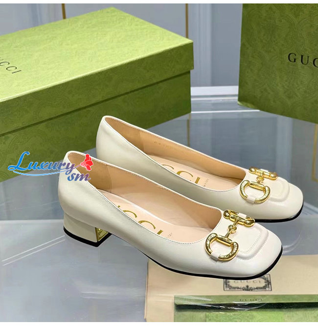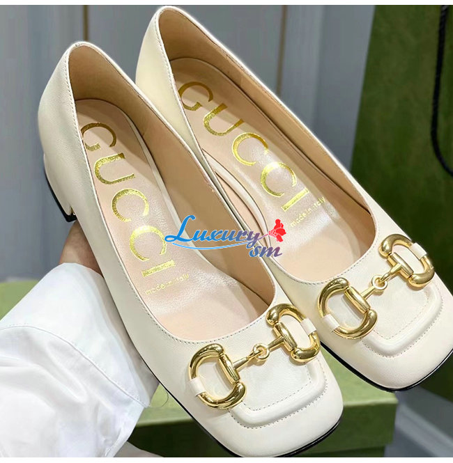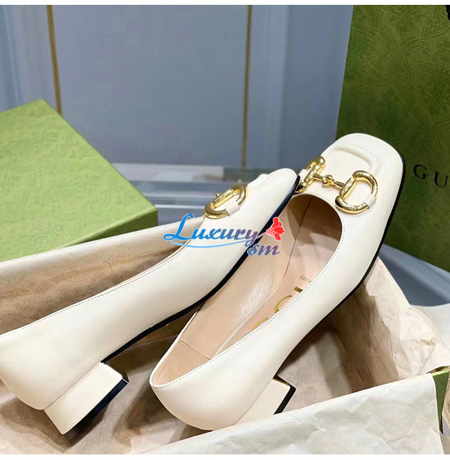 GUCCI-645600 9022 구찌 화이트 가죽 홀스빗 발레 플랫