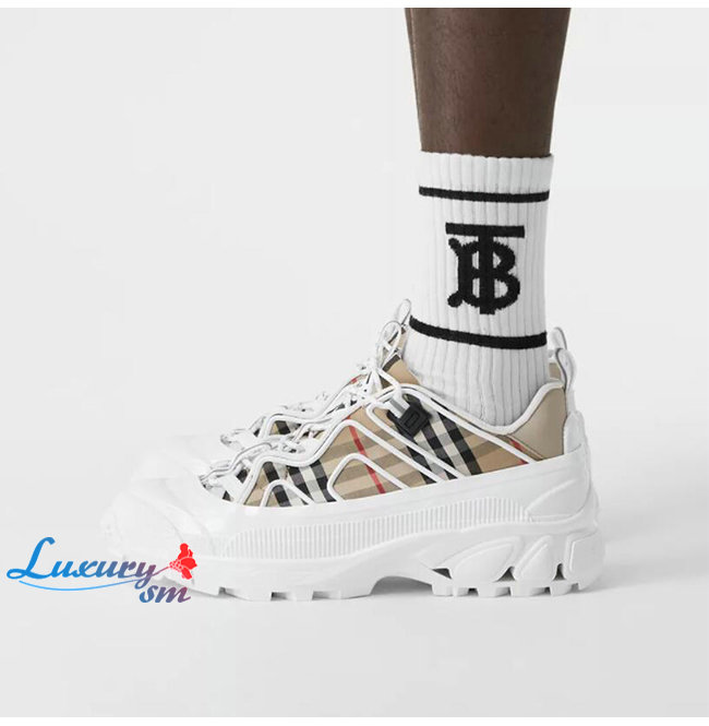 BURBERRY-80372541 버버리 베이지/화이트 빈티지 체크 코튼 레더 아서 스니커즈