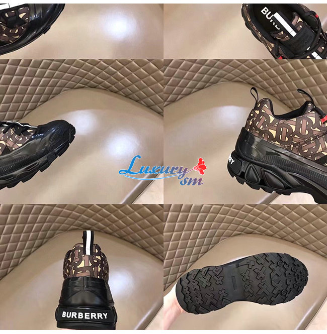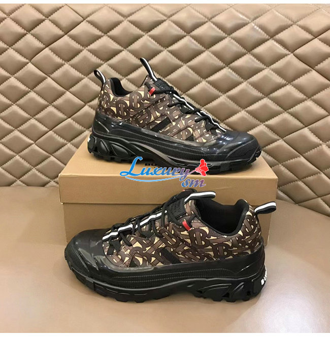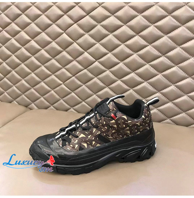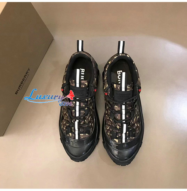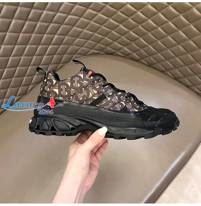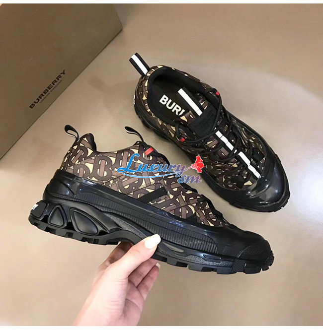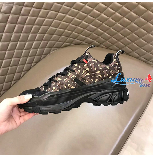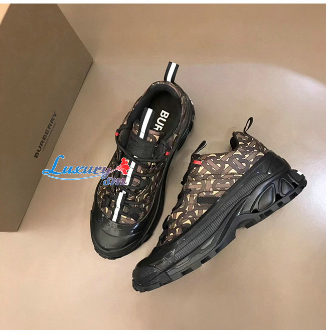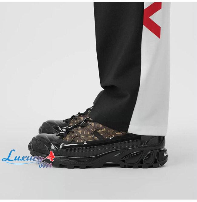 BURBERRY-80217781 버버리 브라운 모노그램 프린트 E-캔버스 아서 스니커즈