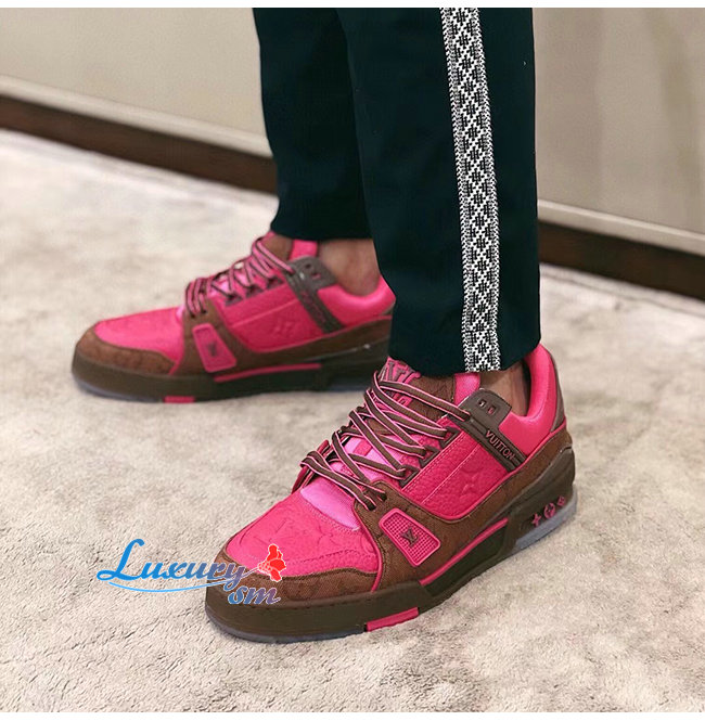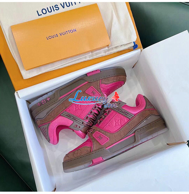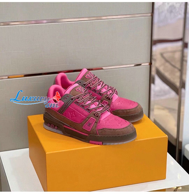 LOUIS VUITTON-1A8Z5E 루이비통 로즈 모노그램 송아지 가죽 LV 트레이너 스니커즈