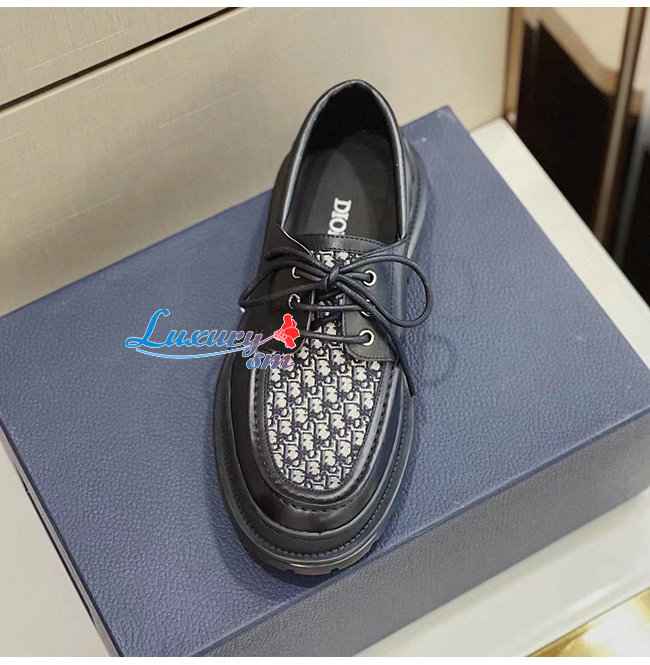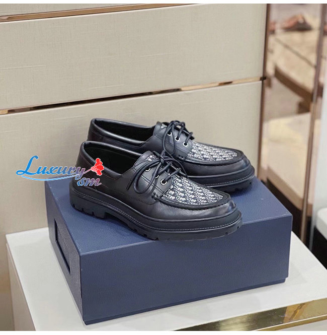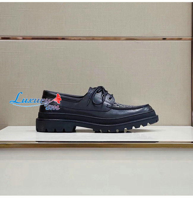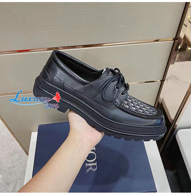 DIOR-3DE318 디올 블랙 스무스 송아지 가죽 DIOR EXPLORER 보트 슈즈 남성용
