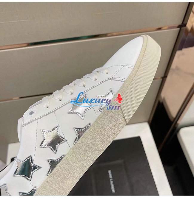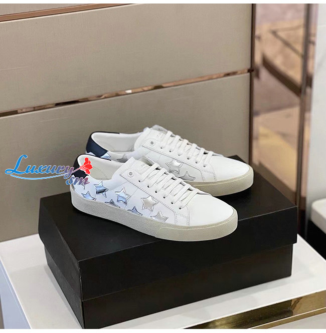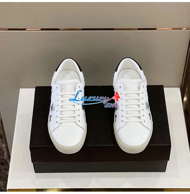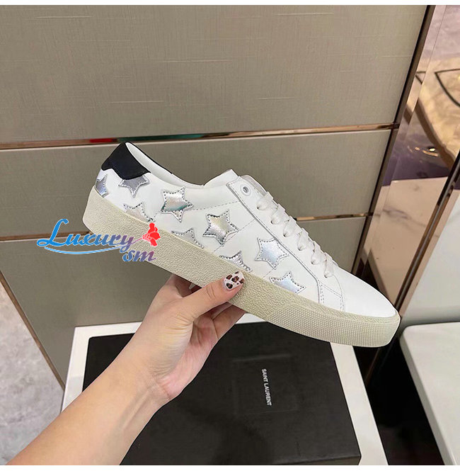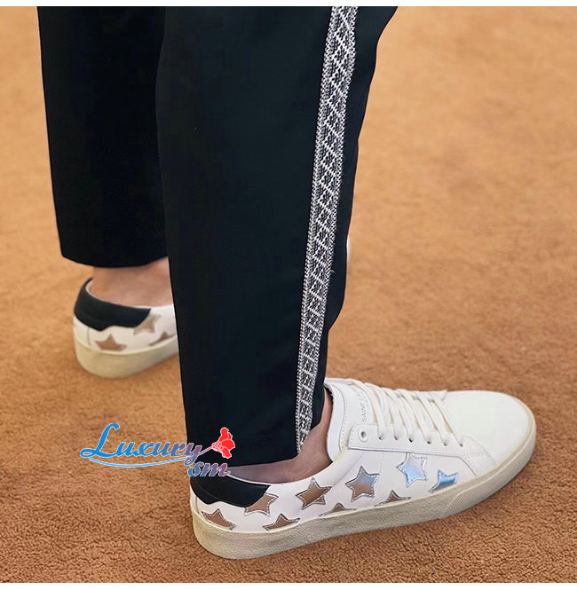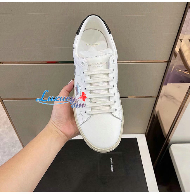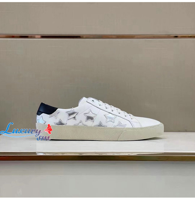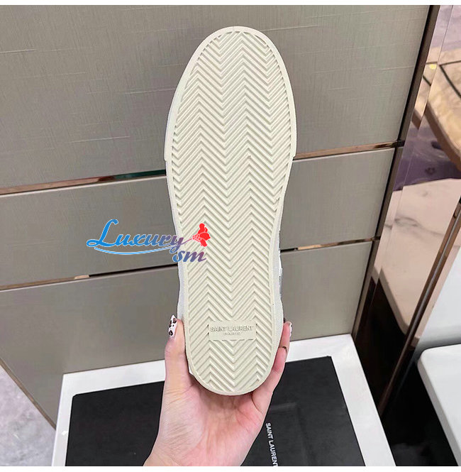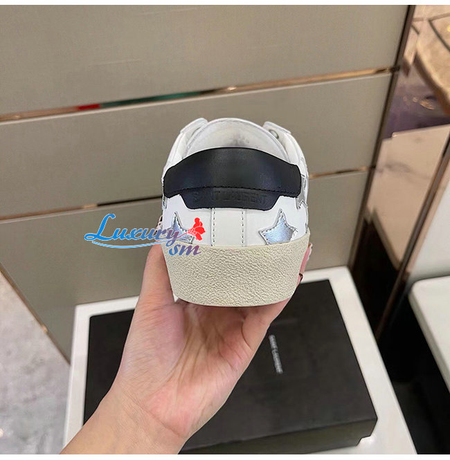 SAINT LAURENT-421572 생 로랑 화이트 송아지 가죽 시그니처 캘리포니아 로우 탑 스니커즈 남성용