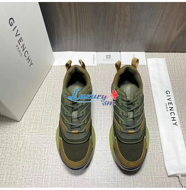 GIVENCHY-BH004WH 지방시 올리브 그린 송아지 가죽 메쉬 GIV 1 스니커즈 남성용