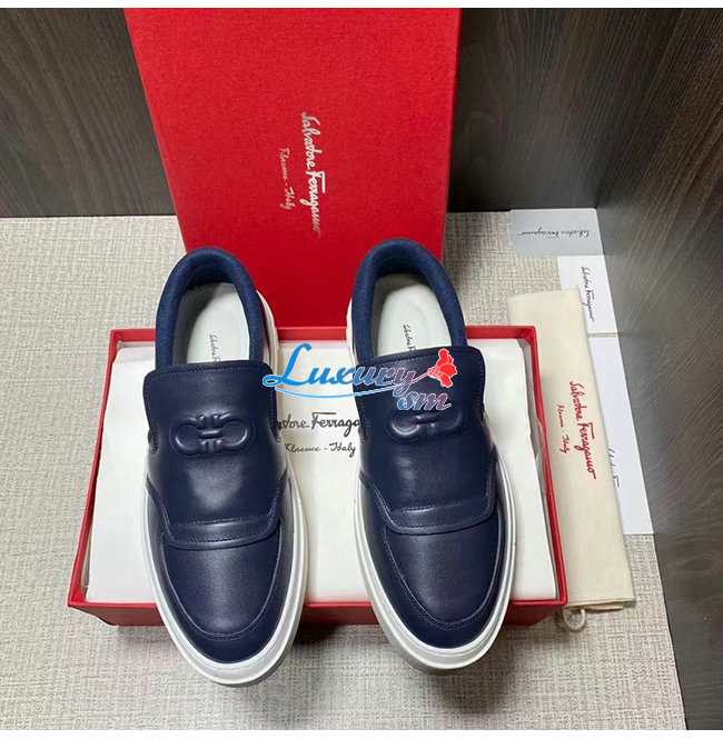 Ferragamo-020242 페라가모 네이비 카프스킨 프리아모 슬립온