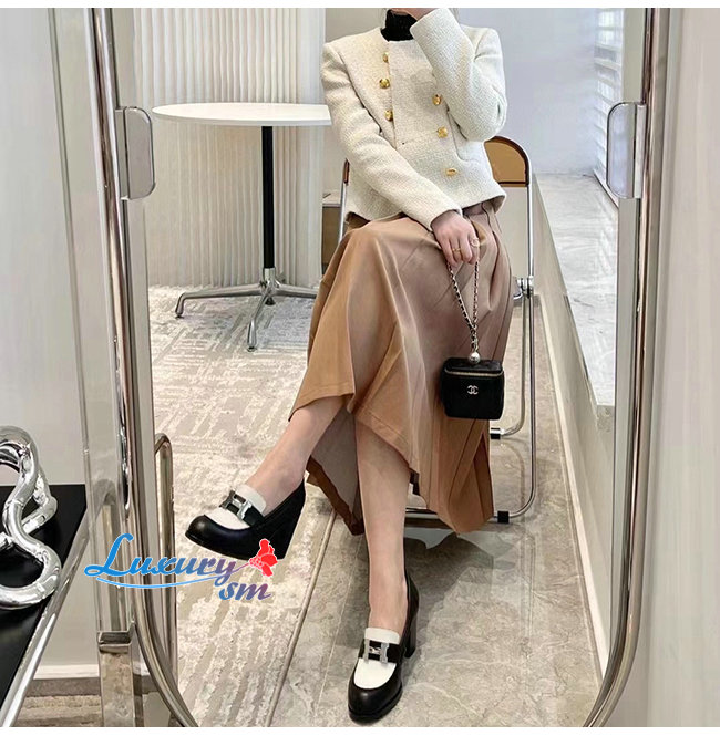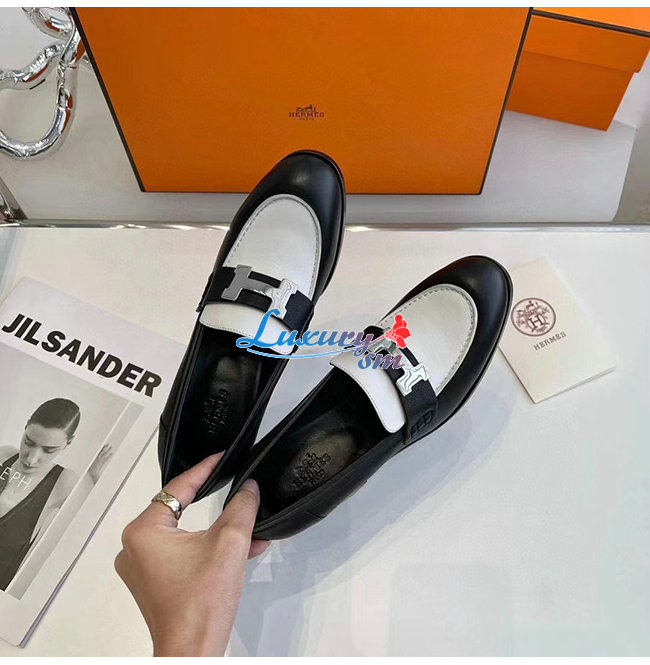 HERMES-H212092Z 에르메스 블랙/화이트 카프스킨 도핀 70 로퍼