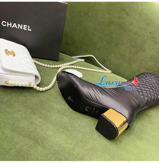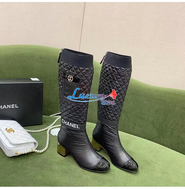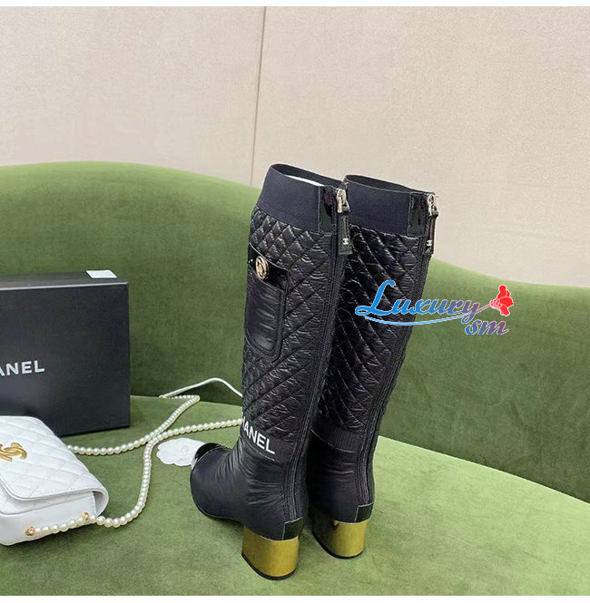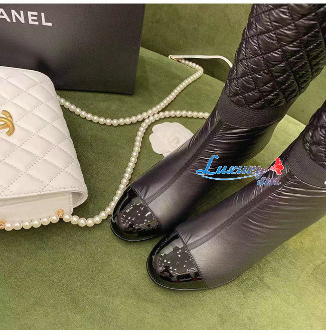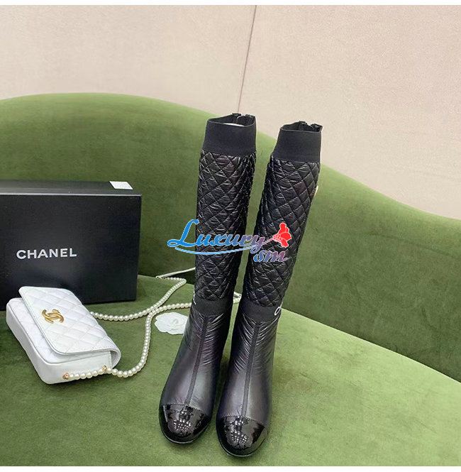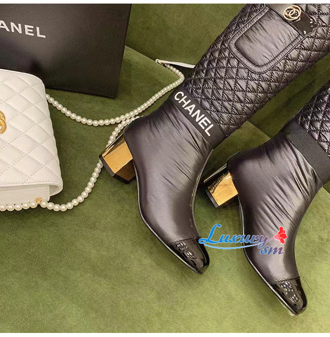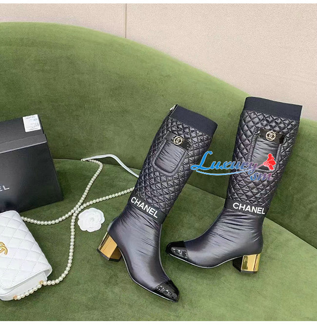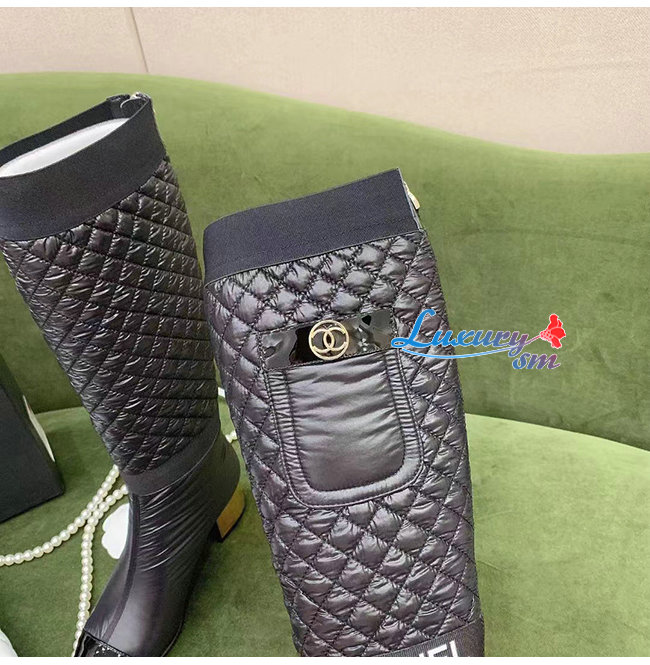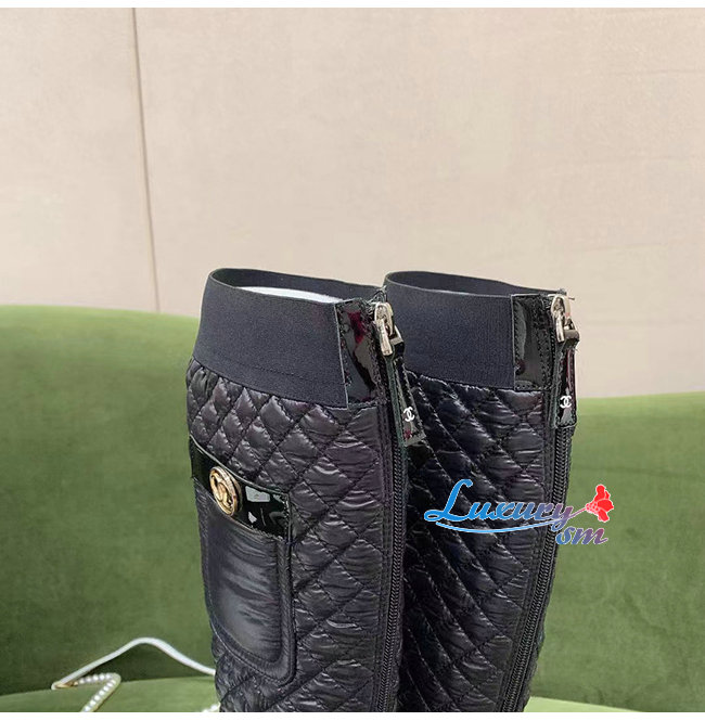 CHANEL-G38428 샤넬 블랙 패브릭 하이 부츠