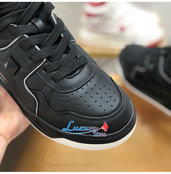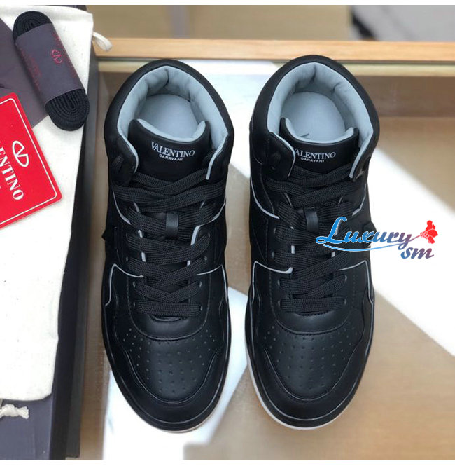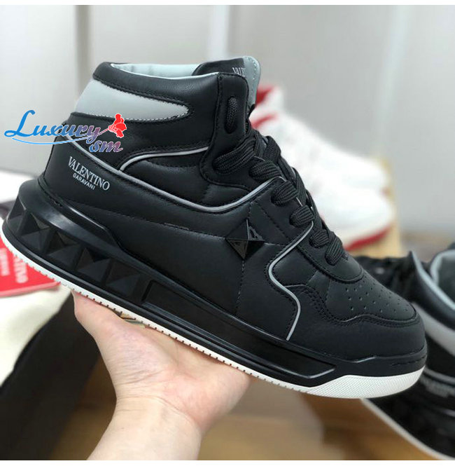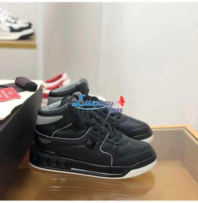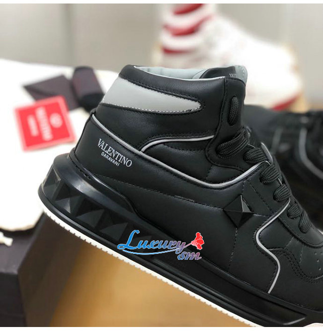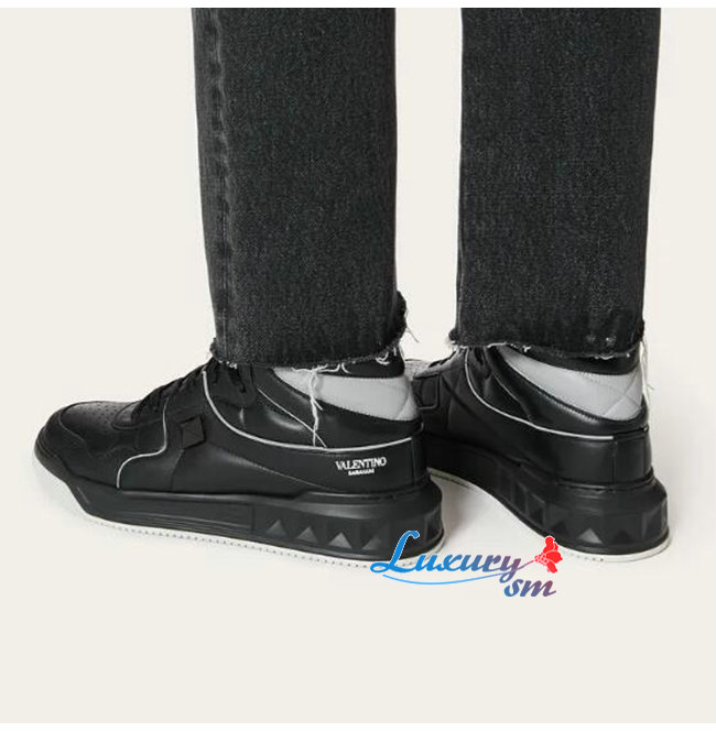 VALENTINO-WY2S0E63 발렌티노 블랙 나파 가죽 ONE STUD 미드탑 스니커즈 남여공용