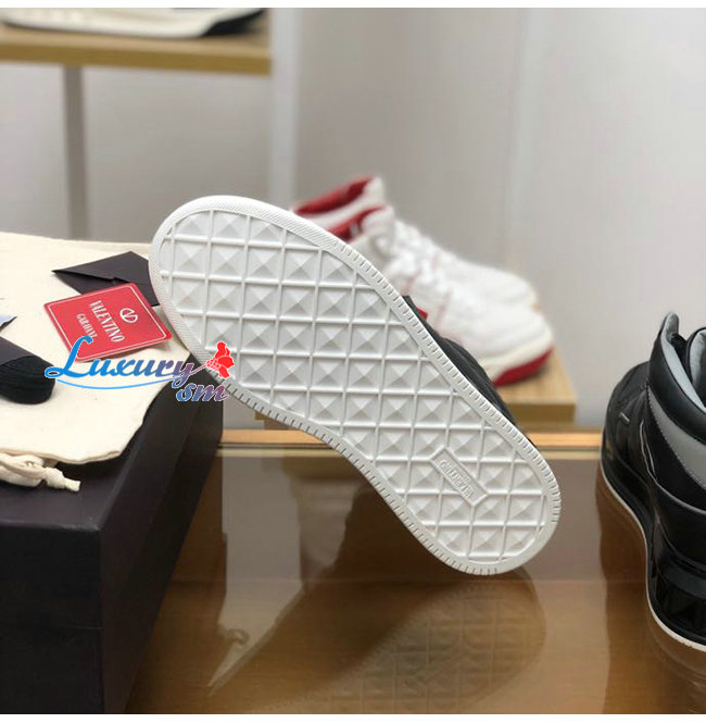 VALENTINO-XY2S0E63 발렌티노 화이트/블랙 나파 가죽 ONE STUD 미드탑 스니커즈 남여공용