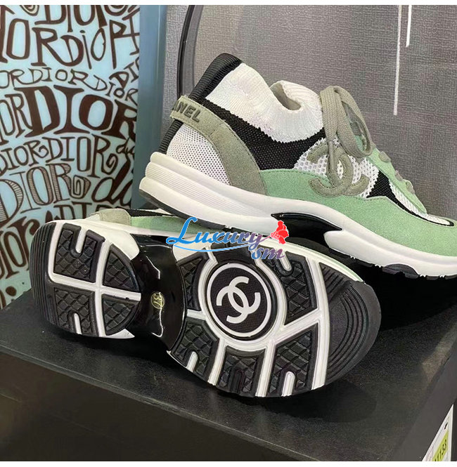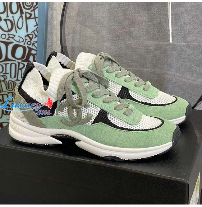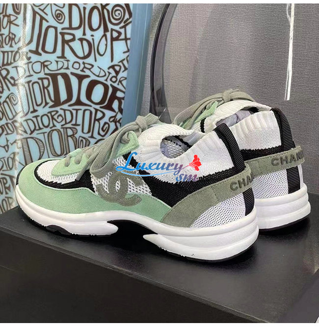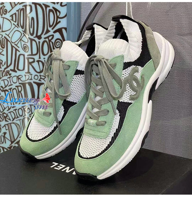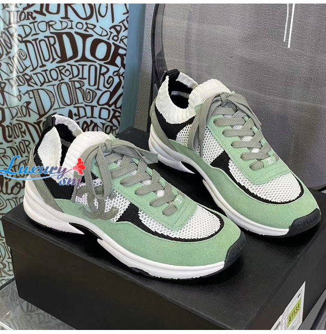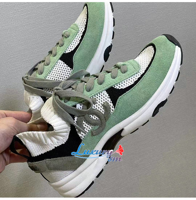 CHANEL-G38750 샤넬 그린 스웨이드 카프스킨 스니커즈 여성용