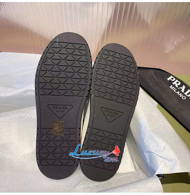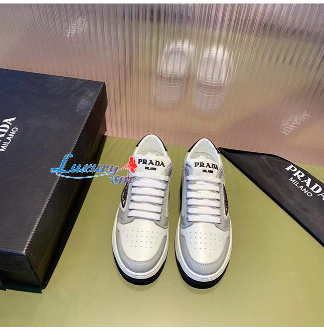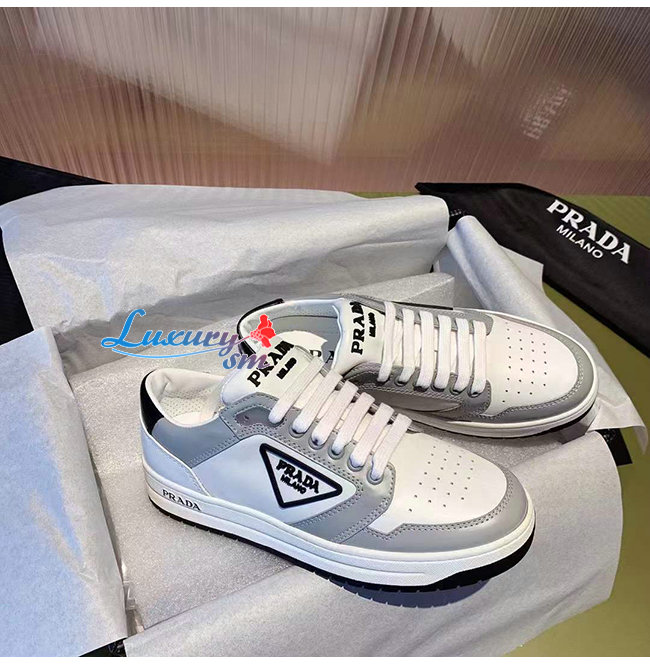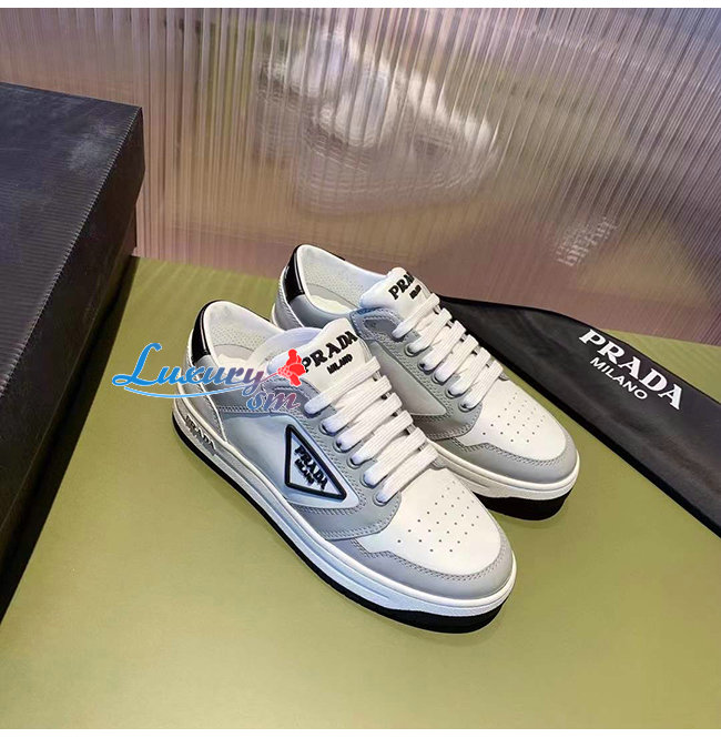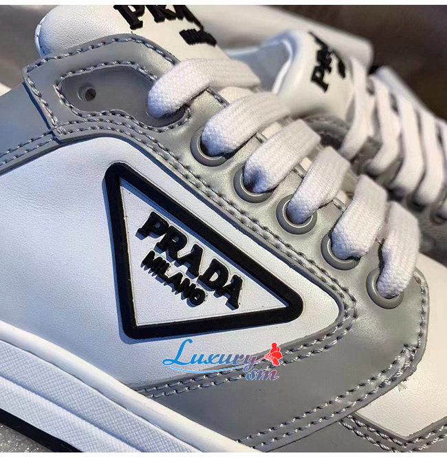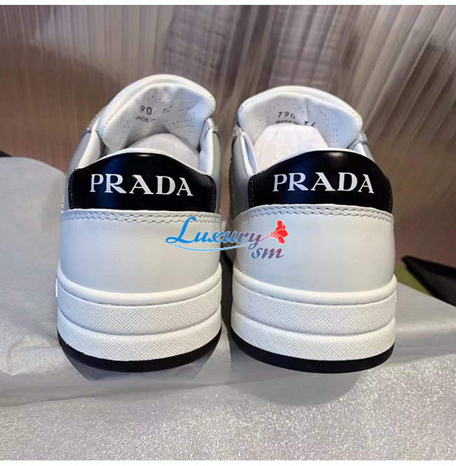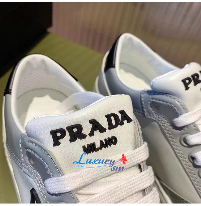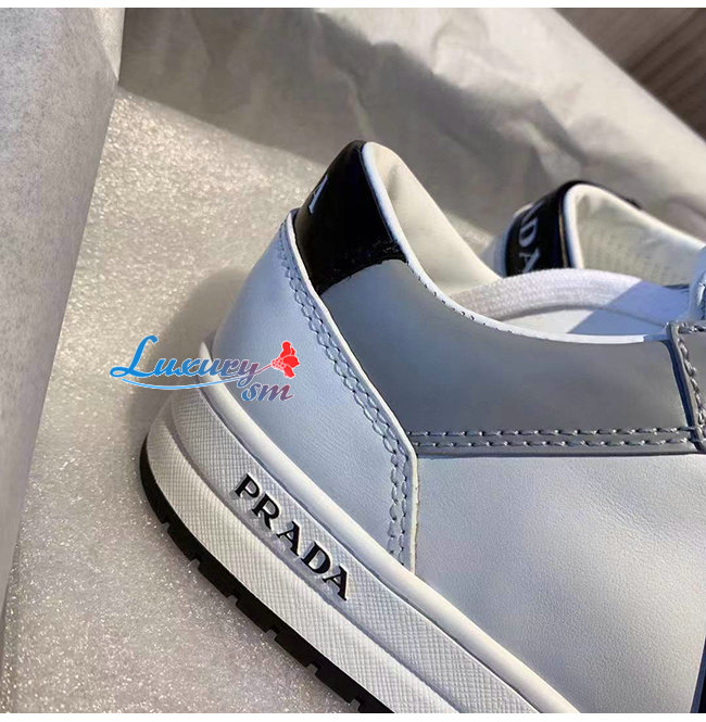 PRADA-1E790M 프라다 화이트/블루 송아지 가죽 퍼포레이트 스니커즈 남녀공용