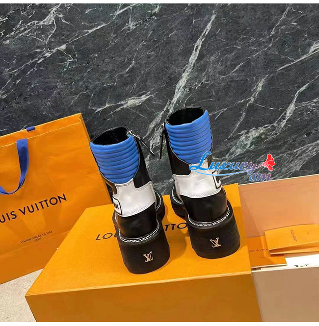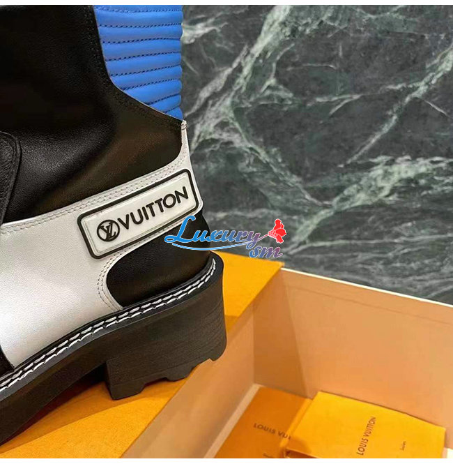 LOUIS VUITTON-1A9OBR 루이비통 블랙/블루 송아지 가죽 LV 보부르 앵클 부츠