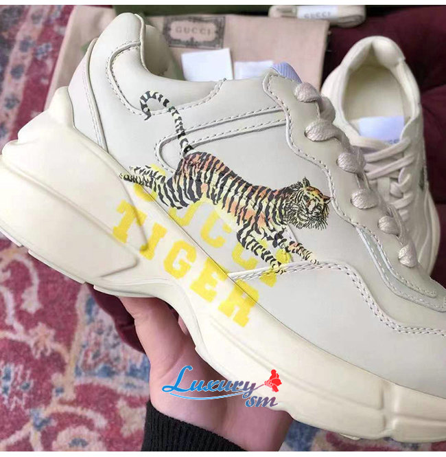 GUCCI-687626 9522 구찌 롸이톤 아이보리 가죽 타이거 스니커즈
