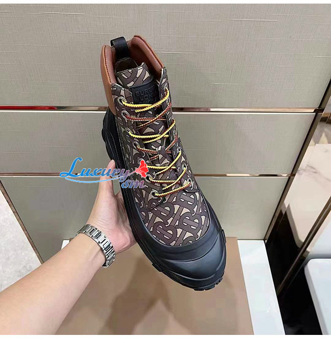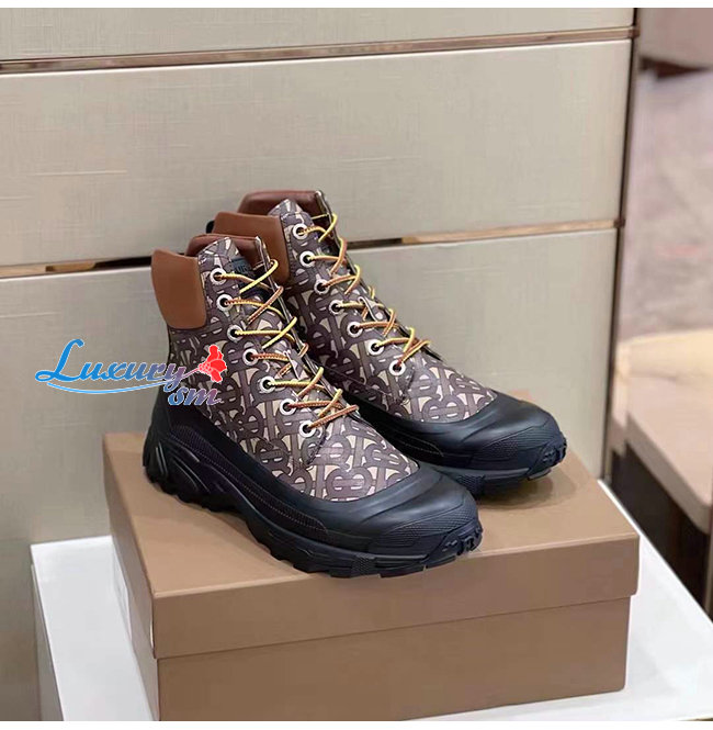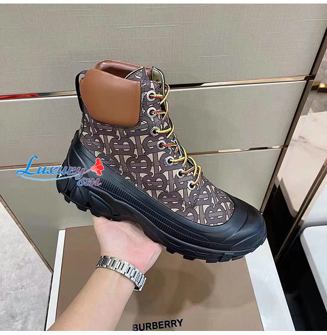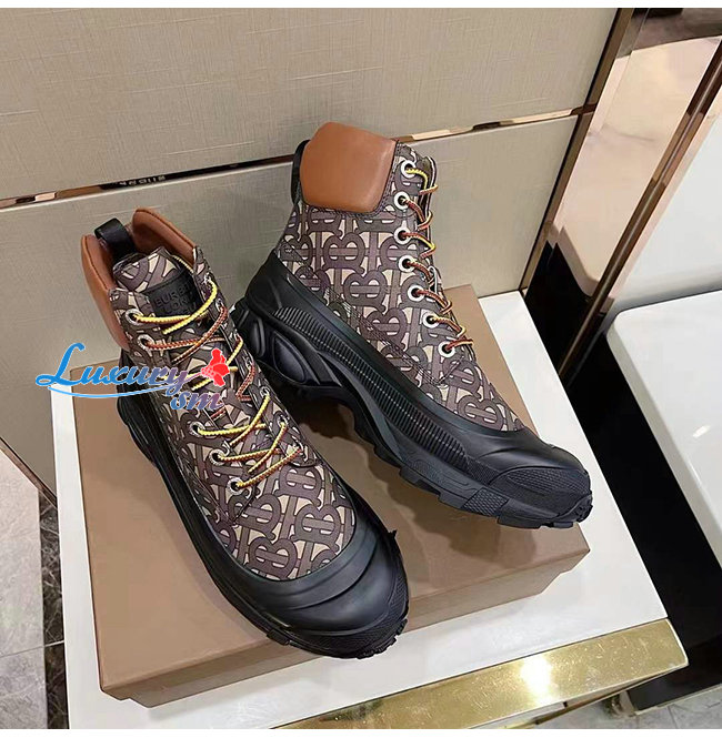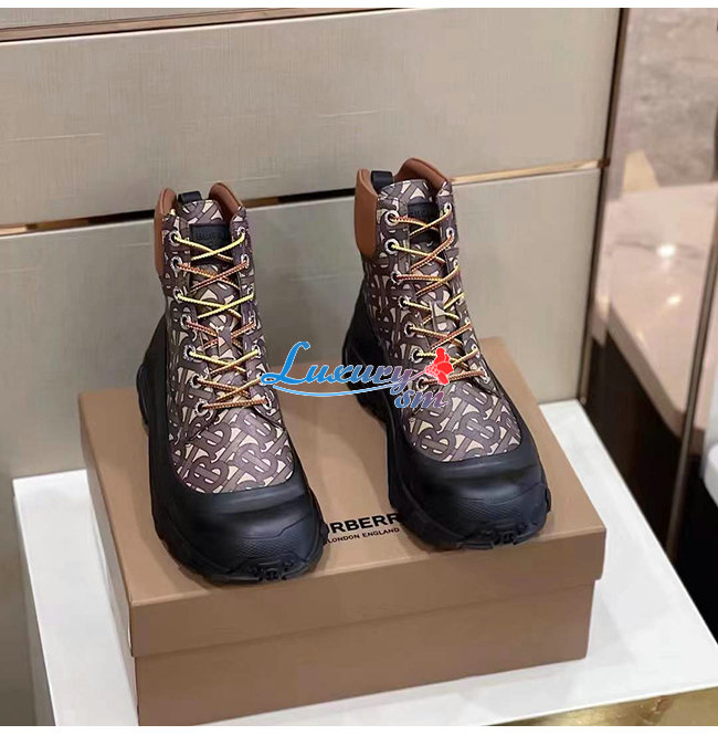 BURBERRY-80455511 버버리 컨트라스트 솔 모노그램 프린트 레더 부츠