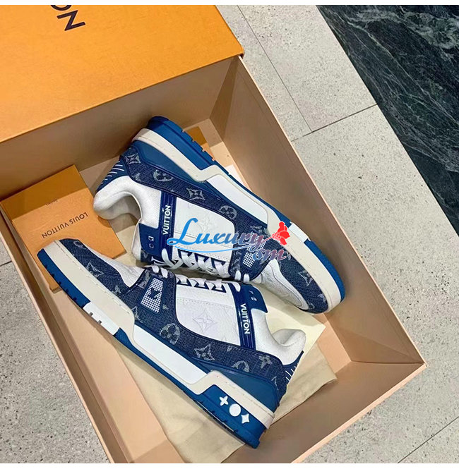 LOUIS VUITTON-1A9JGT 루이비통 블루 모노그램 데님 LV 트레이너 스니커즈