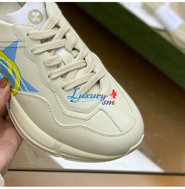 GUCCI-631708 9522 구찌 롸이톤 아이보리 가죽 Gucci Hawaii 프린트 스니커즈 남여공용