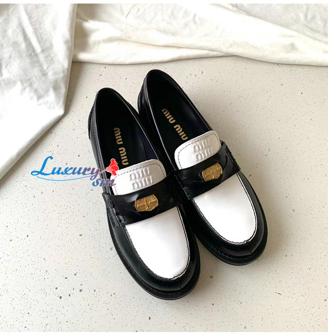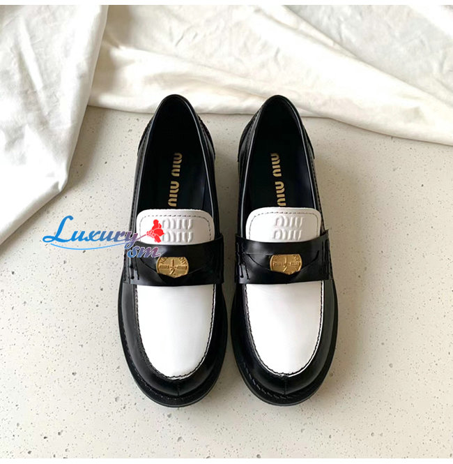 MIUMI*-5D773D 미우미우 블랙/화이트 페니 로퍼