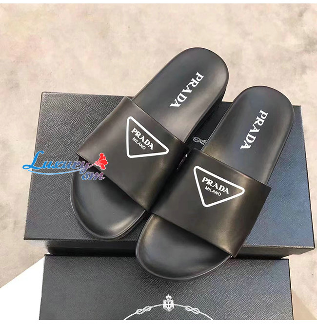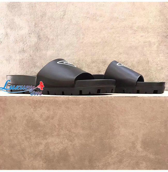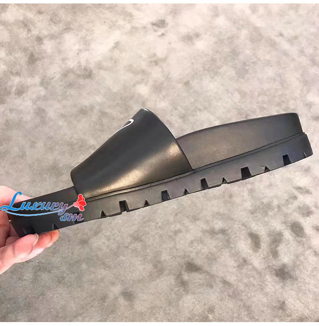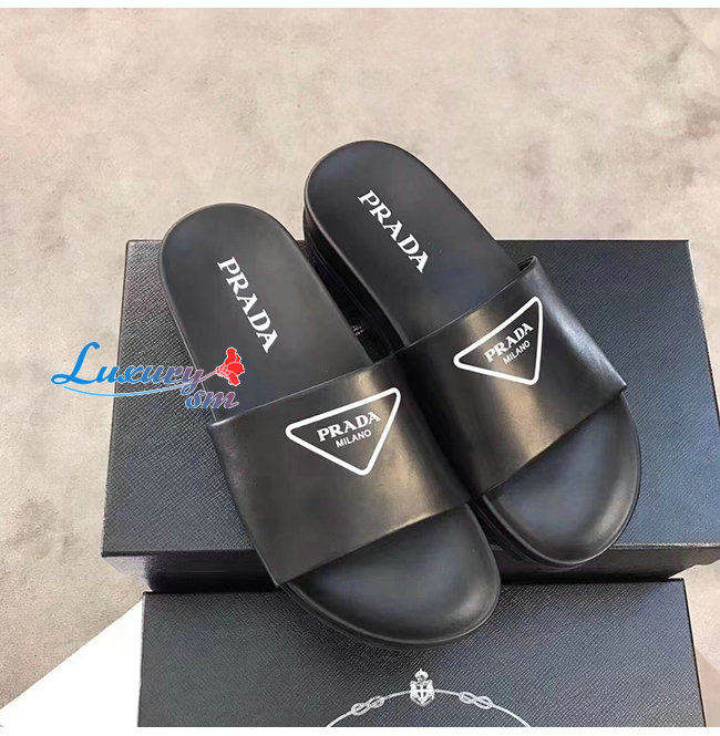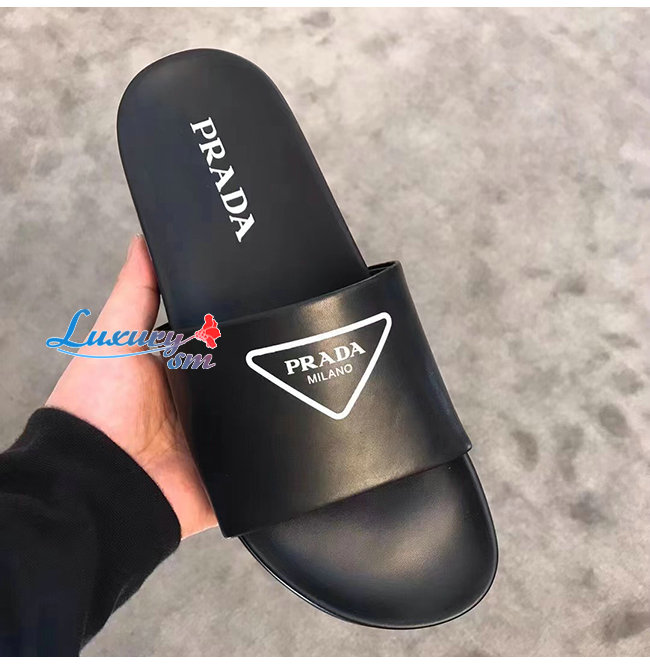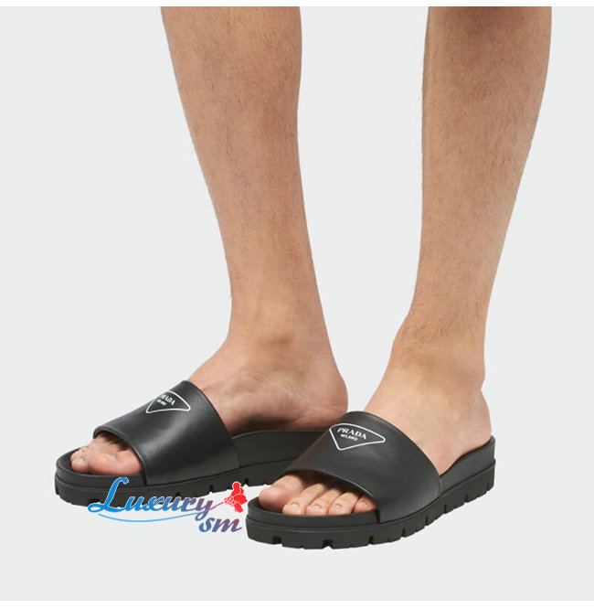 PRAD*-2X3060 프라다 블랙 가죽 슬라이드 샌들