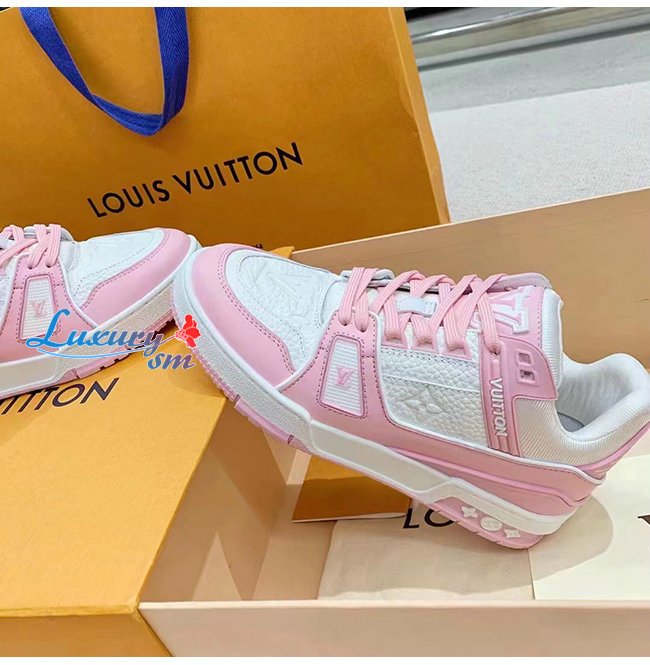 LOUIS VUITT**-1AA6Y6 루이비통 핑크 LV 트레이너 스니커즈 남여공용