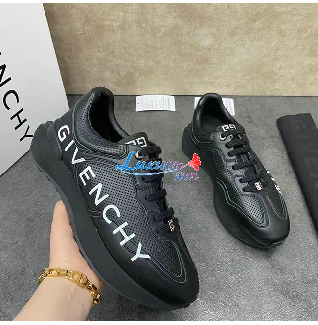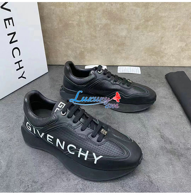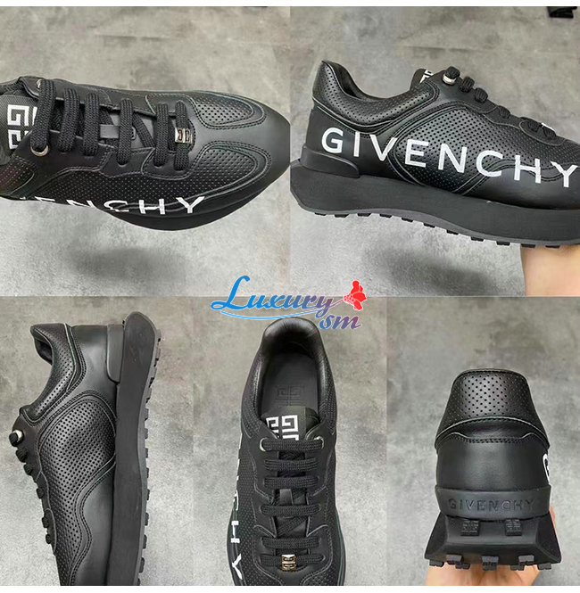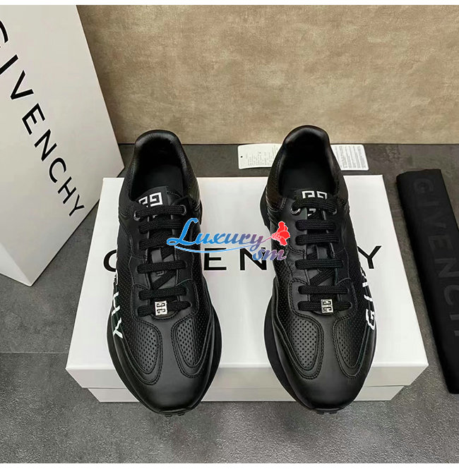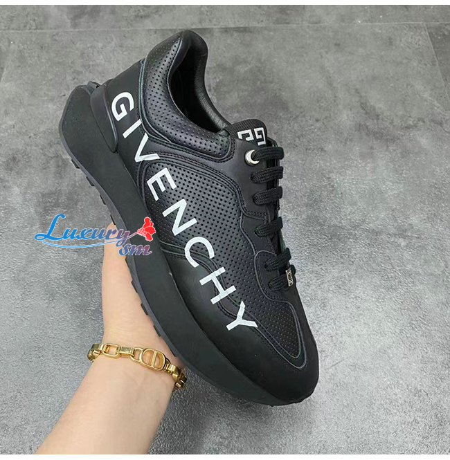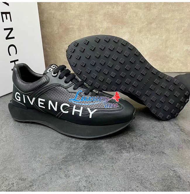 GIVENCHY-BH005CH 지방시 블랙 퍼포레이티드 가죽 GIV 러너 스니커즈 남성용