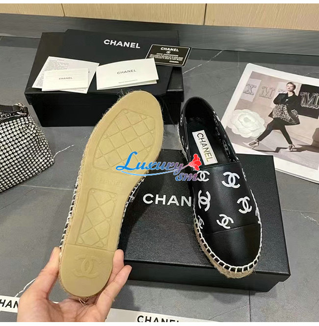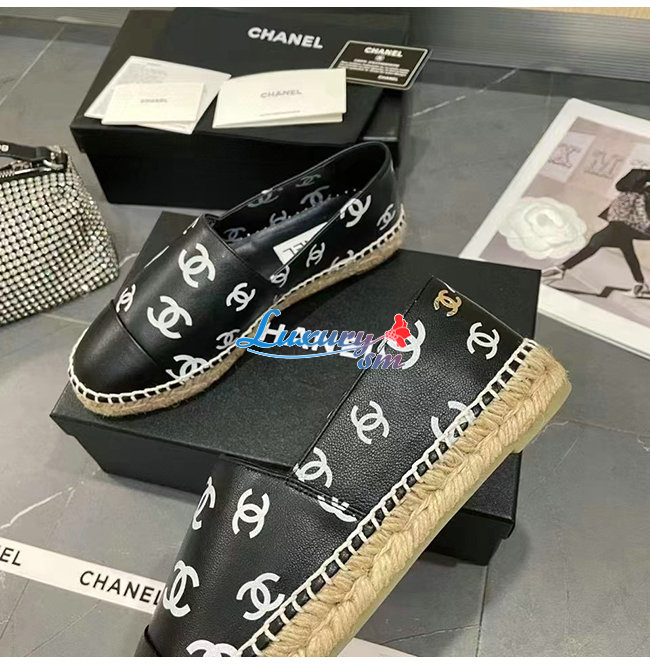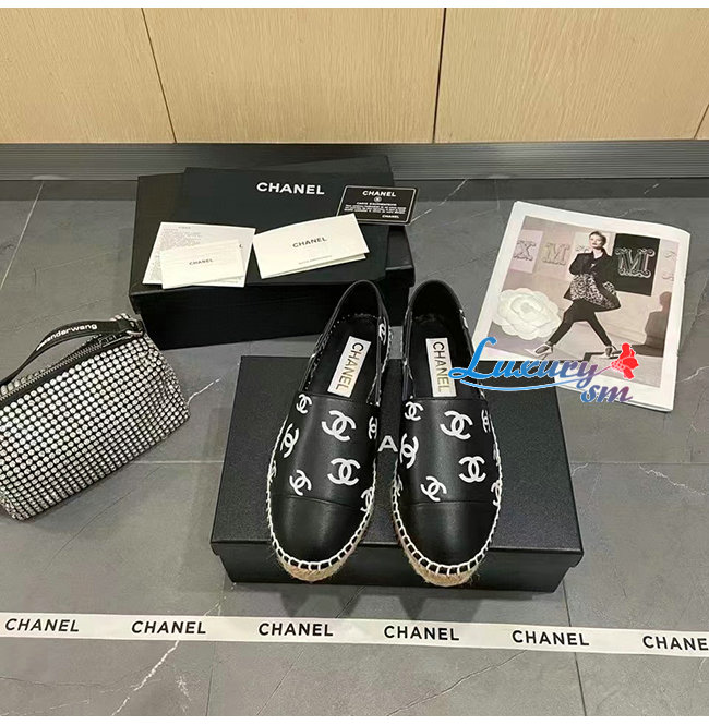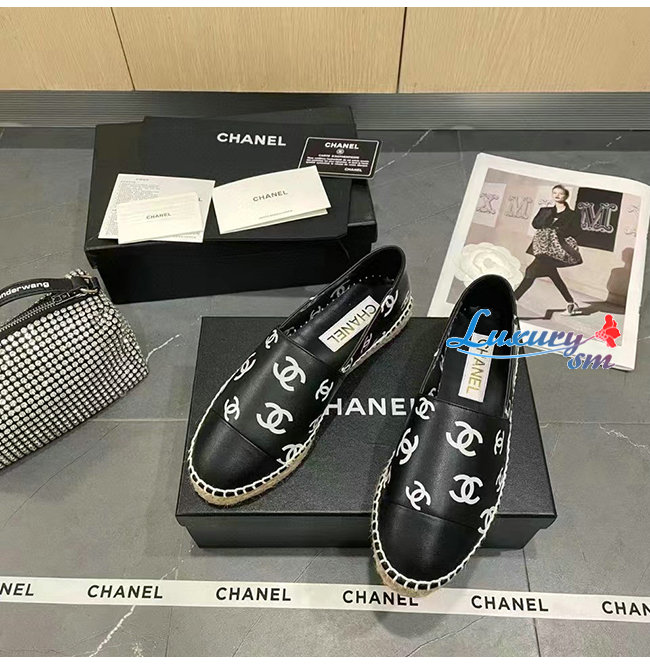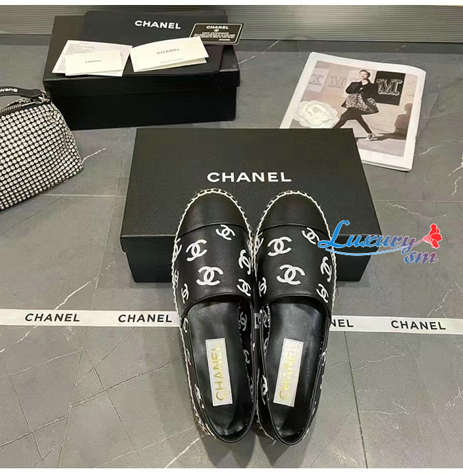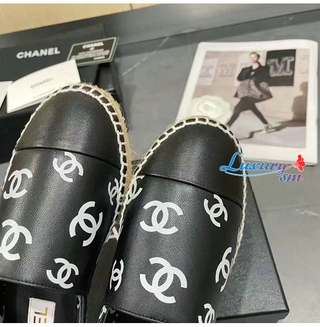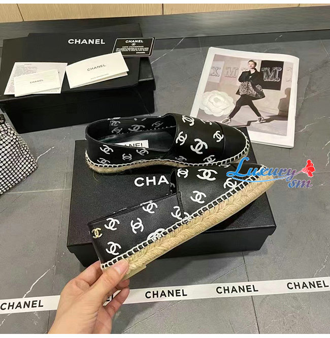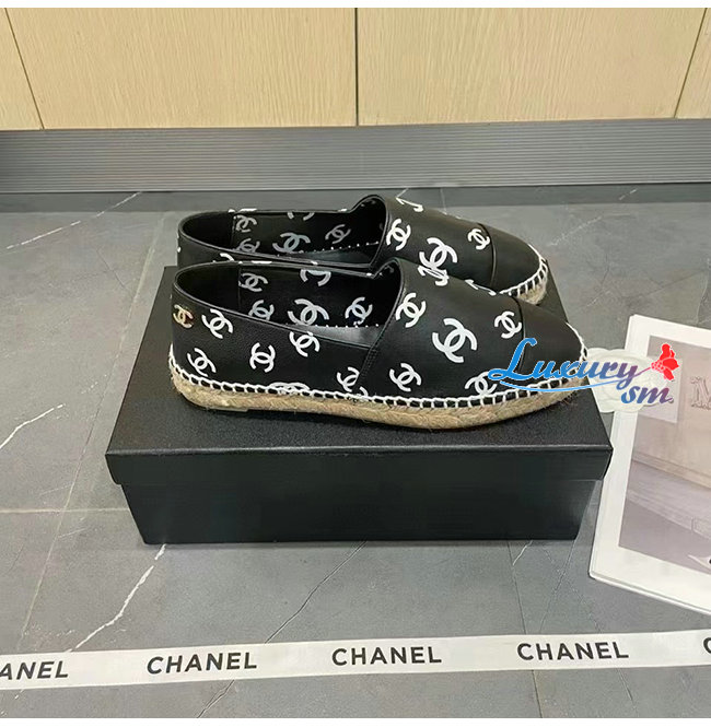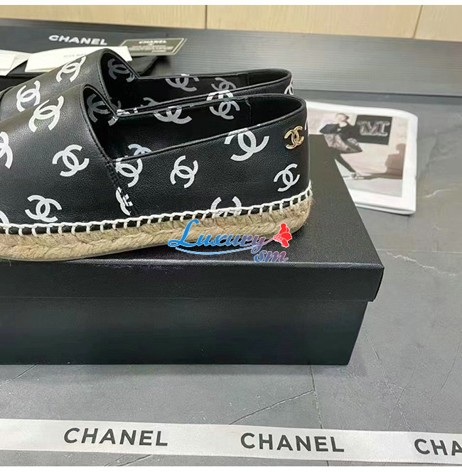 CHANEL-G38628 샤넬 블랙 프린티드 램스킨 에스파드리유