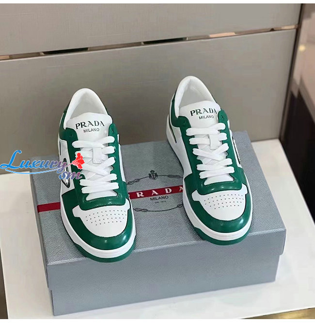 PRADA-2EE364 프라다 그린 다운타운 가죽 스니커즈
