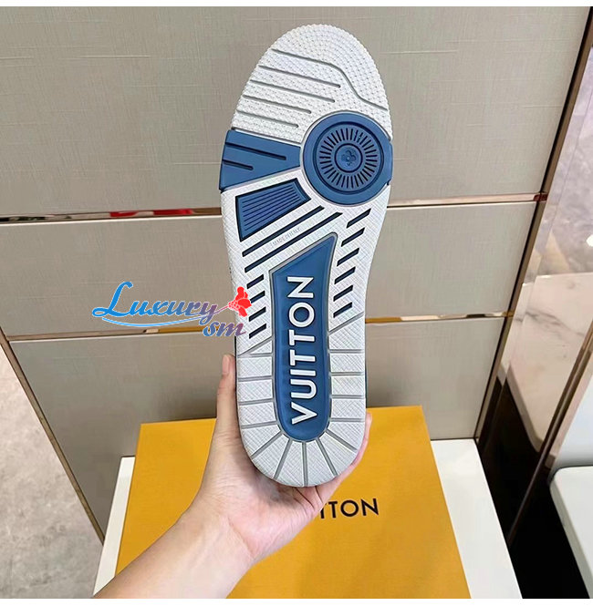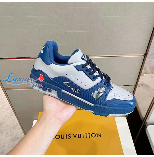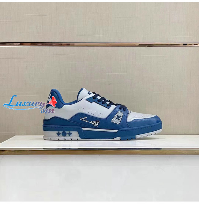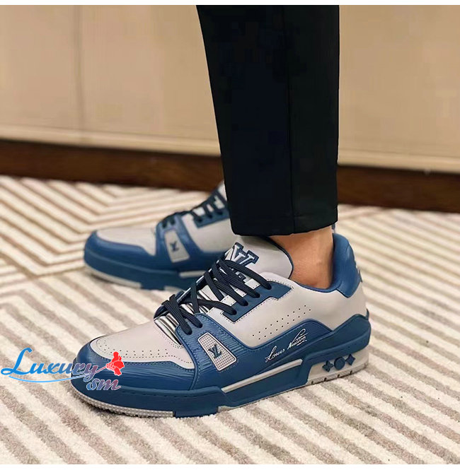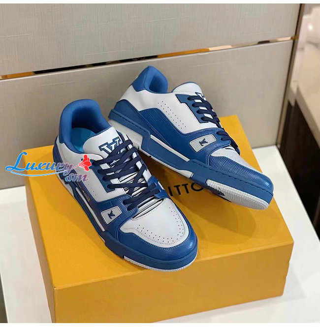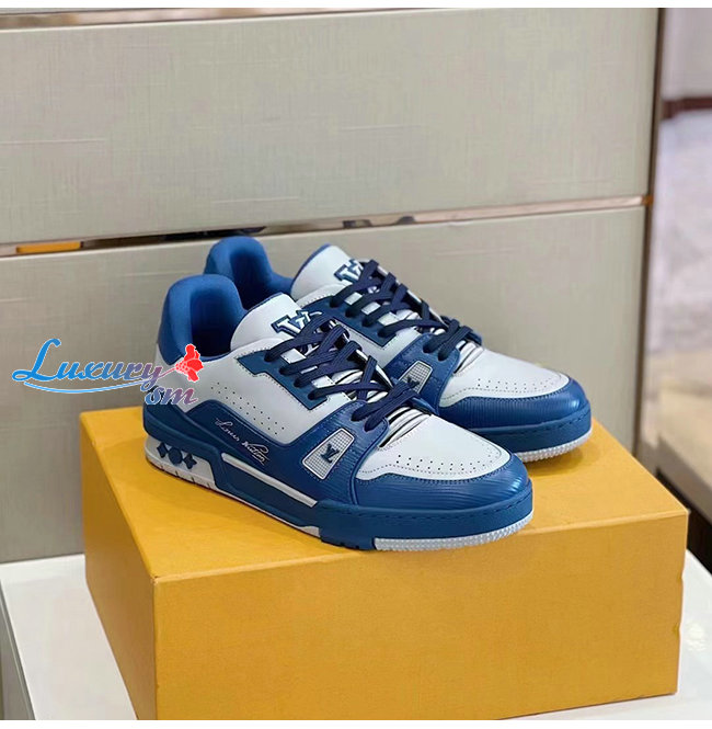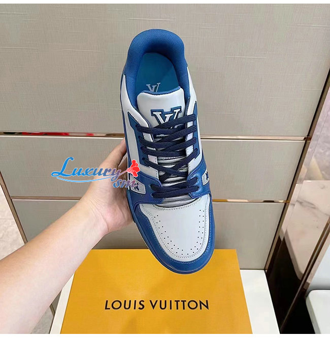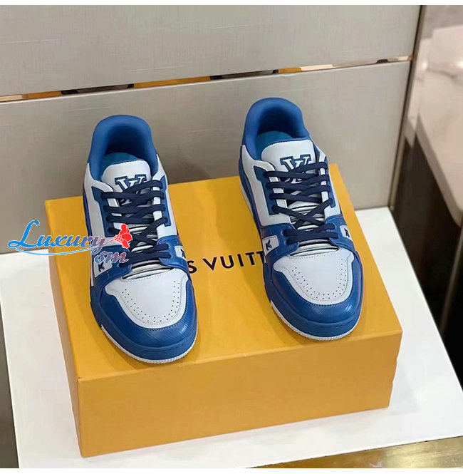 LOUIS VUITTON-1A8AGO 루이비통 블루/화이트 송아지 가죽 LV 트레이너 스니커즈 가격 : 320,000원