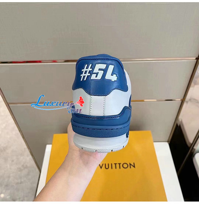 LOUIS VUITTON-1A8ZT4 루이비통 화이트/블루 송아지 가죽 LV 트레이너 스니커즈 가격 : 320,000원