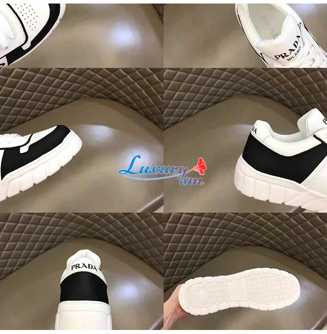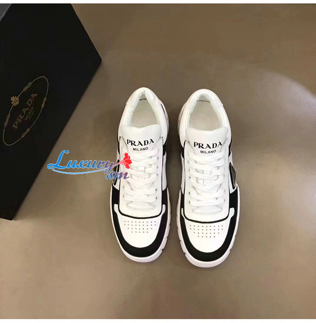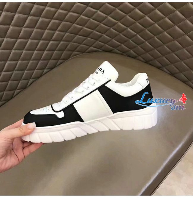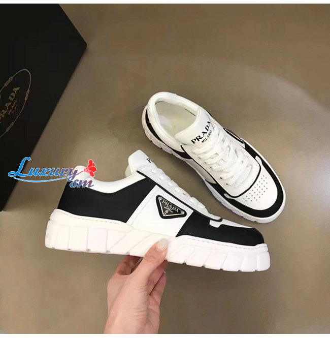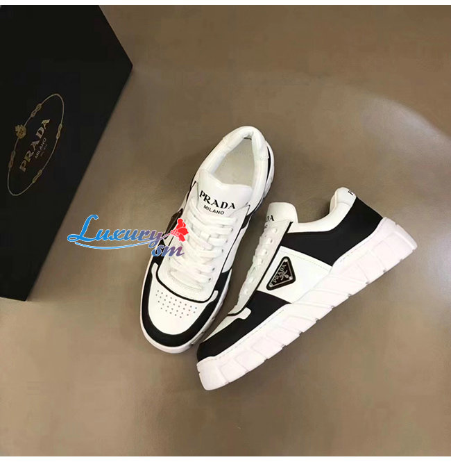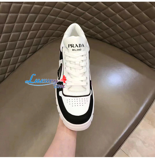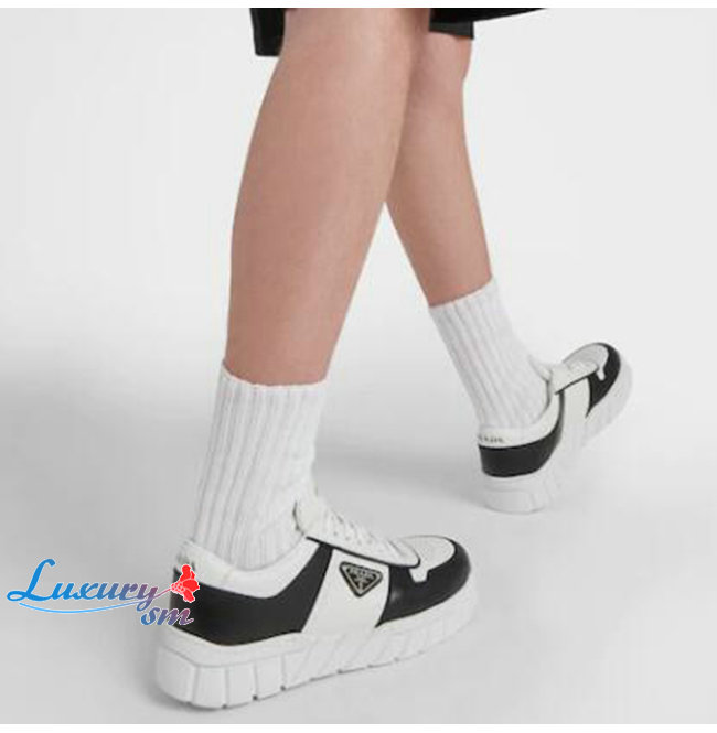 PRADA-2EE378 프라다 화이트/블랙 트라이앵글 로고 스니커즈