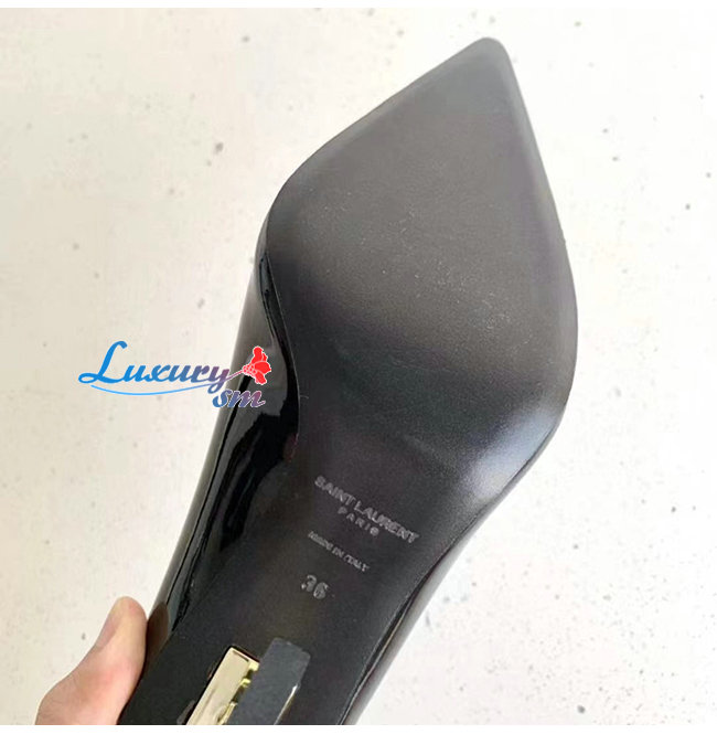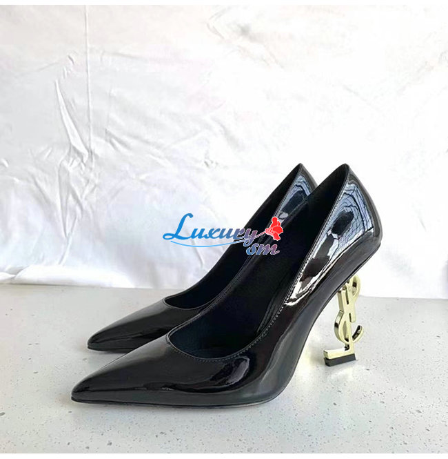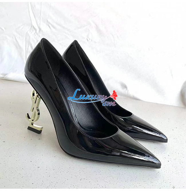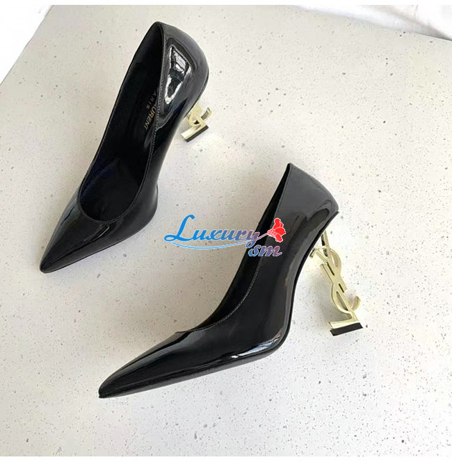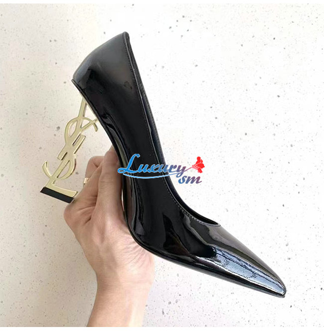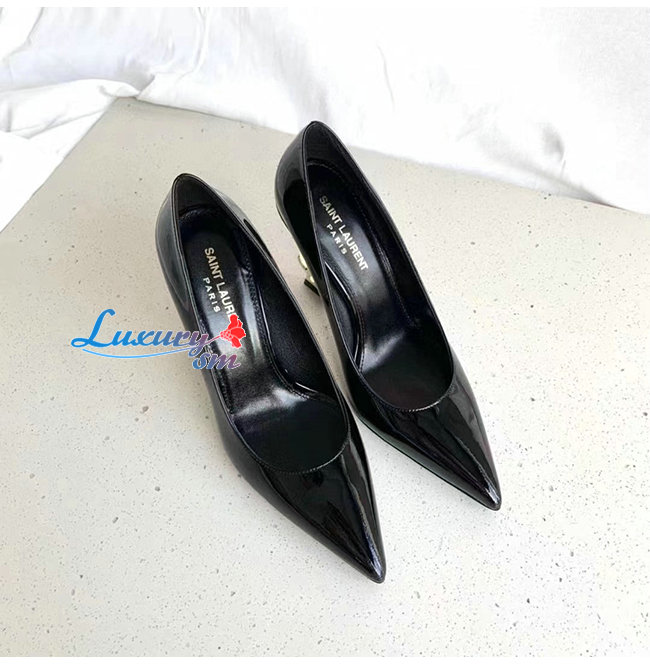 SAINT LAURENT-472011 생 로랑 블랙 페이턴트 가죽 피페이턴트 가죽 오피움 펌프스움 펌프스