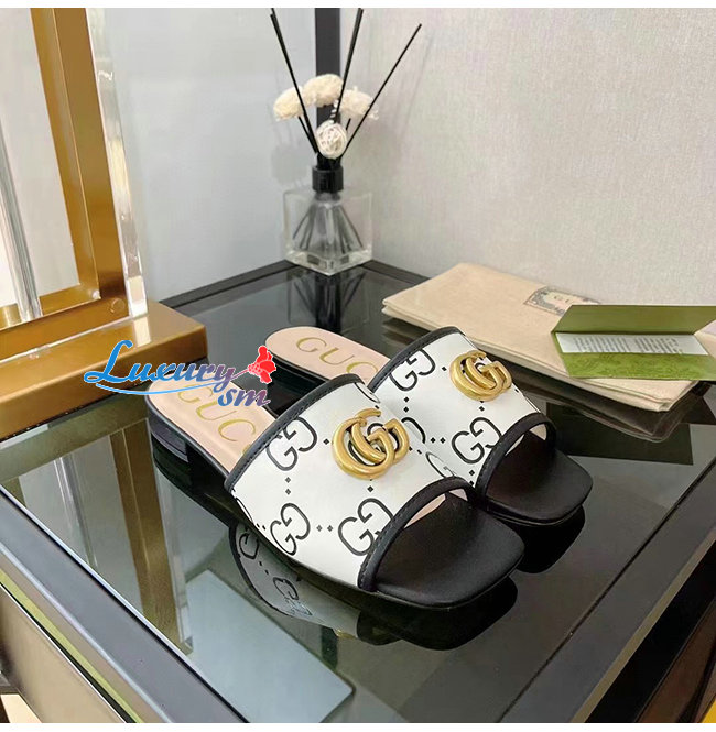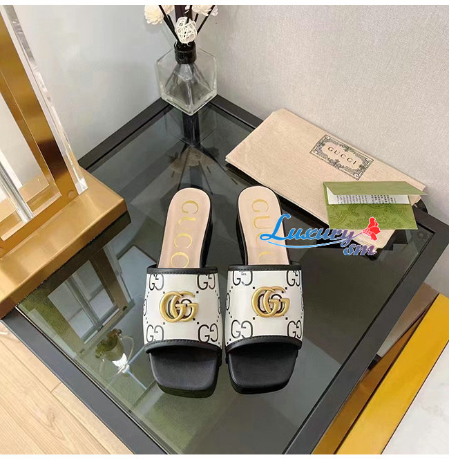 와 골드 톤 더블 G 메탈 장식이 돋보이는 슈즈.