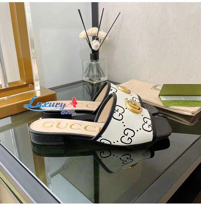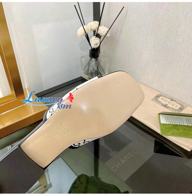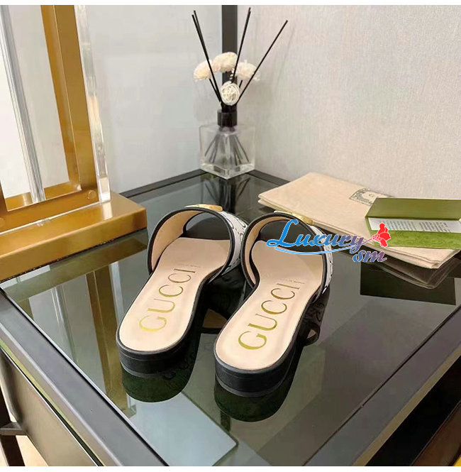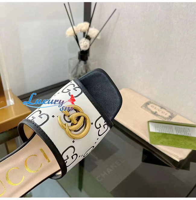 GUCCI-677584 1193 구찌 블랙/화이트 GG 슬라이드 샌들