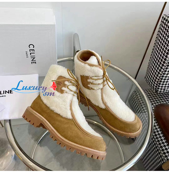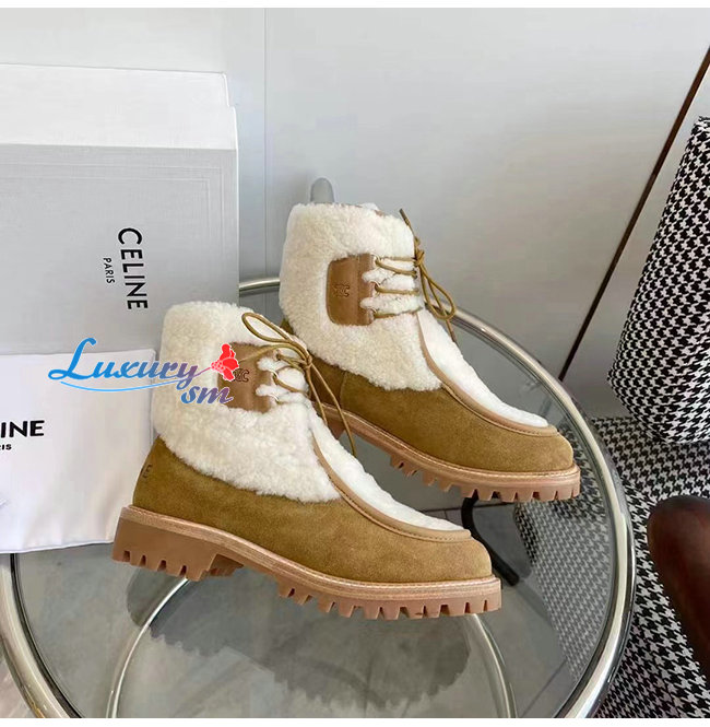 CELINE-345133 셀린느 브라운 스웨이드 가죽 레이스업 부츠 여성용