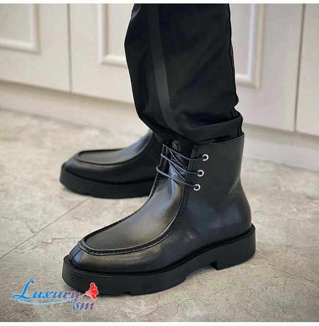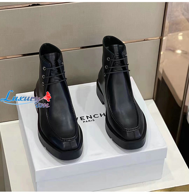 GIVENCHY-BH6037H0 지방시 블랙 스퀘어드 레이스업 앵클 부츠 남성용