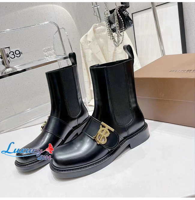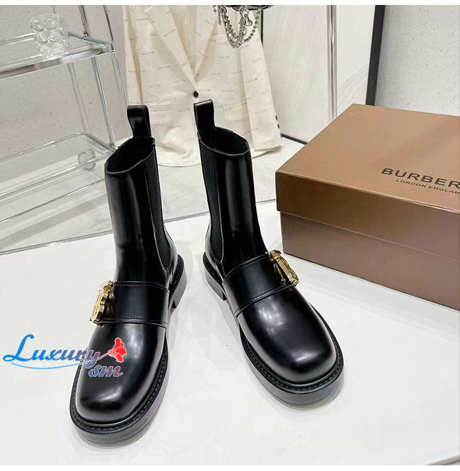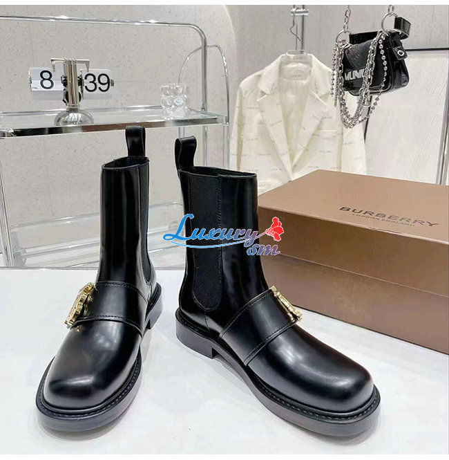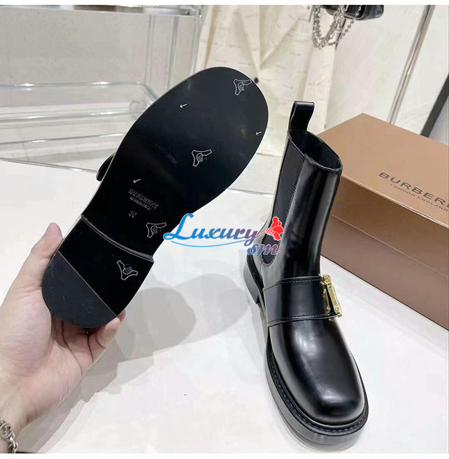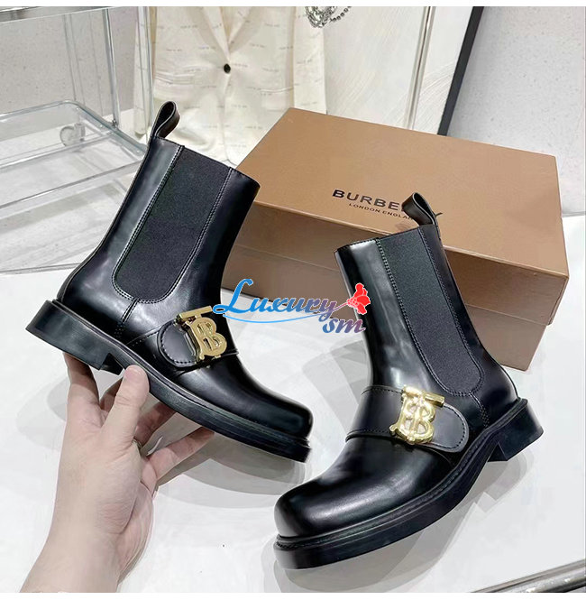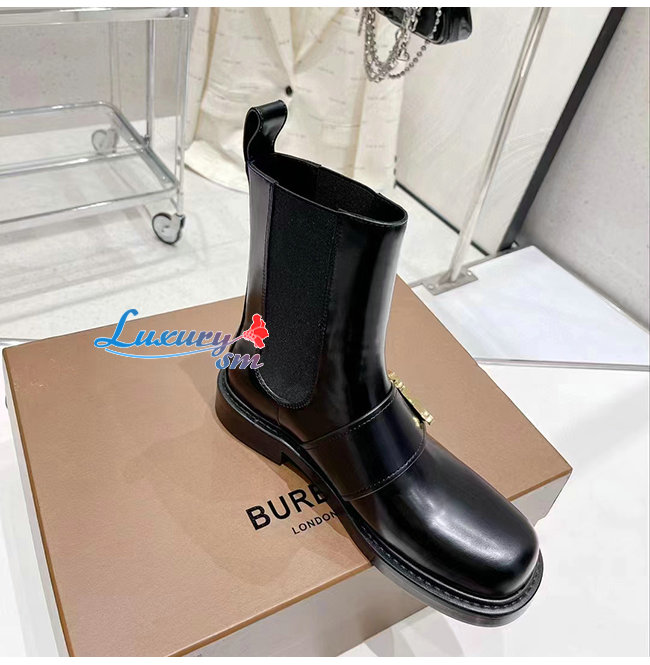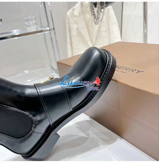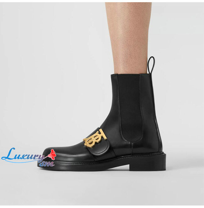 BURBERRY-80581881 버버리 블랙 모노그램 모티프 레더 첼시 부츠 여성용